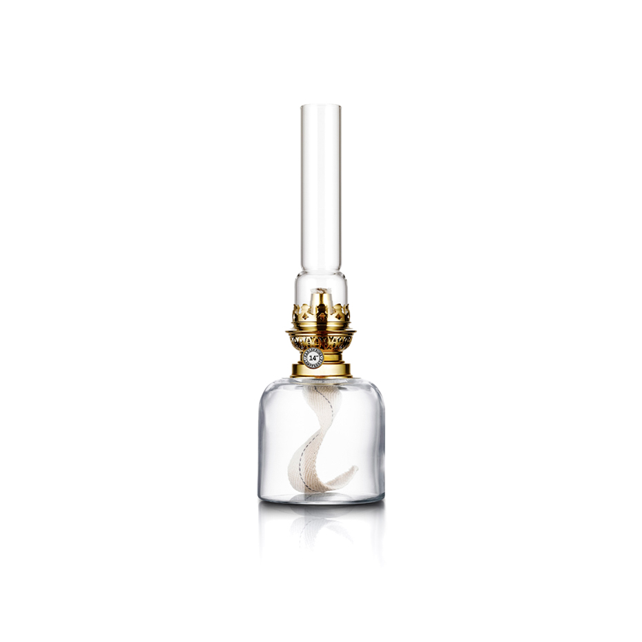 Höjd: 38 cm Ljuskälla: 14' rundbrännare Material: Mässing/Glas