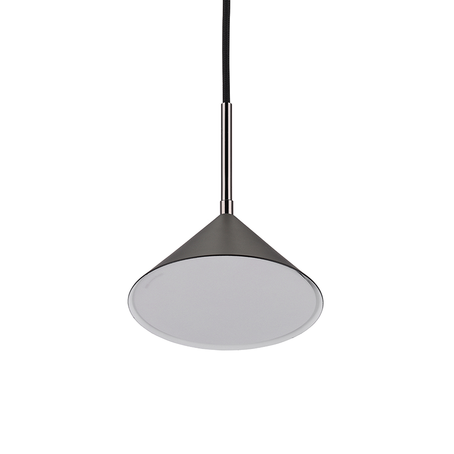 Kuro 17 pendel från Watt & Veke är en kompakt taklampa med konformad skärm i svart metall och eleganta detaljer i svart krom. Den passar perfekt i fönster eller hängande på rad över bardiskar och arbetsbänkar, där den skapar både funktionellt och dekorativt ljus. Med svart textilsladd, takkopp i svart krom och inbyggt bländskydd sprider lampan ljuset mjukt och behagligt. En stilren och flexibel taklampa som kombinerar design och funktion.