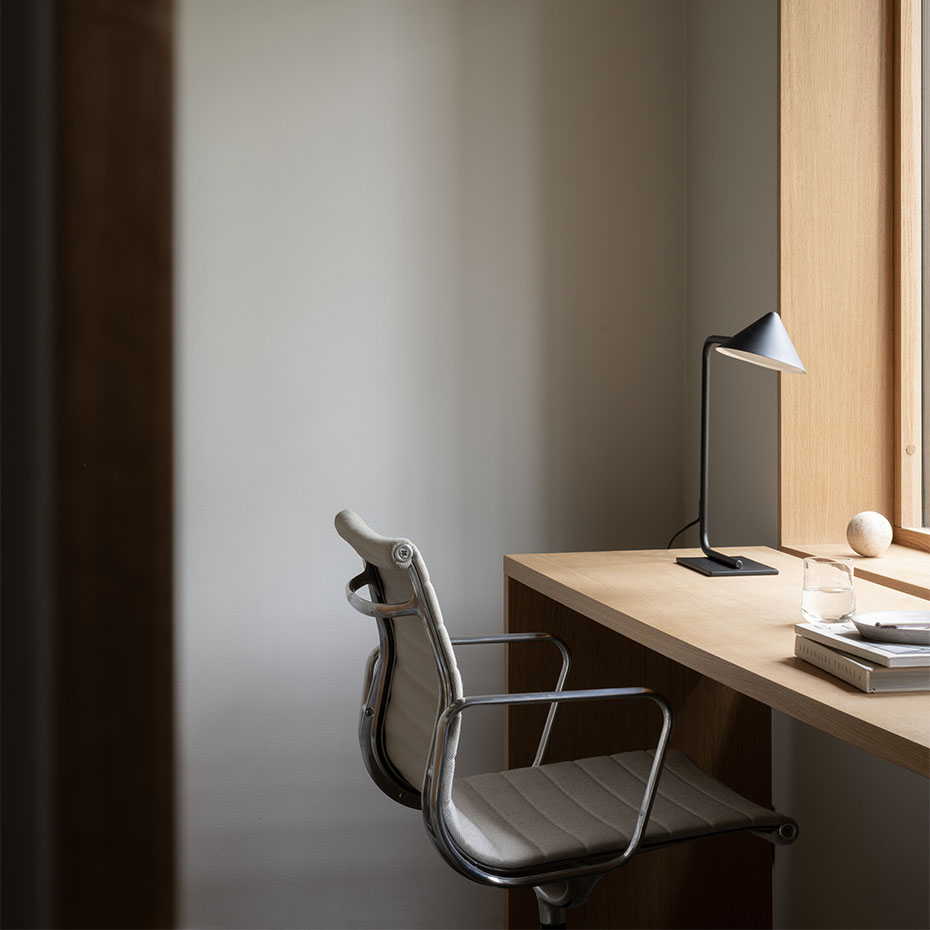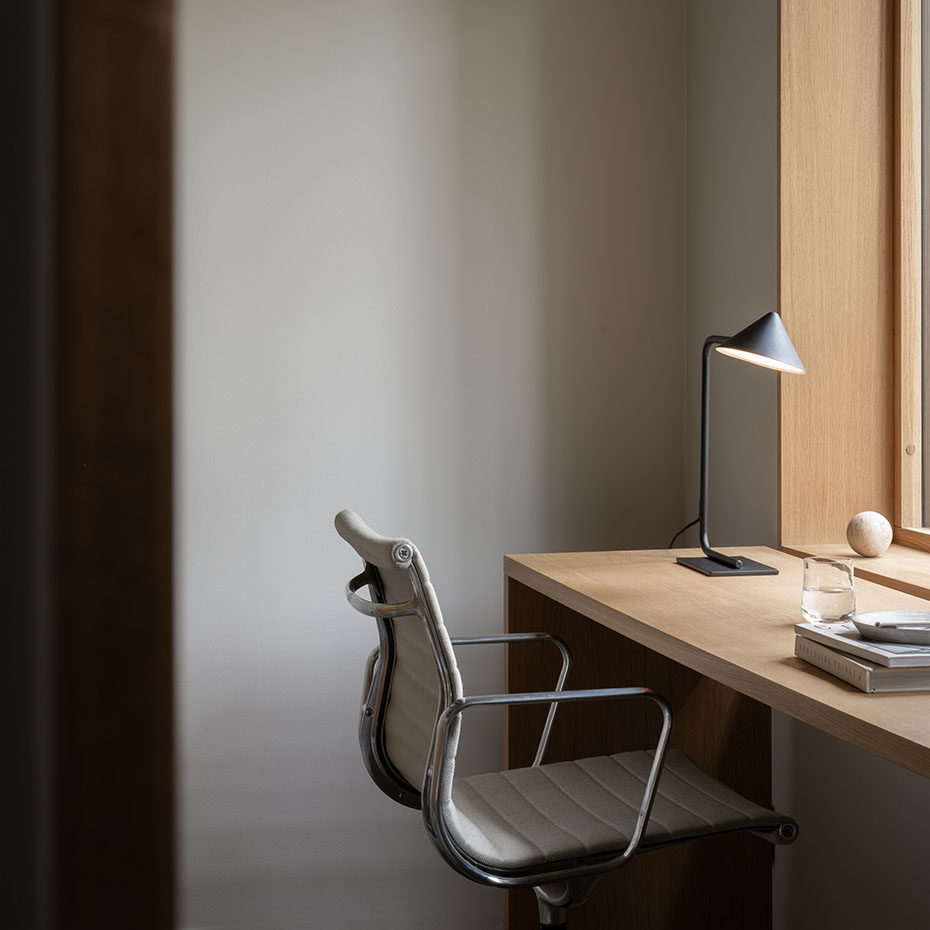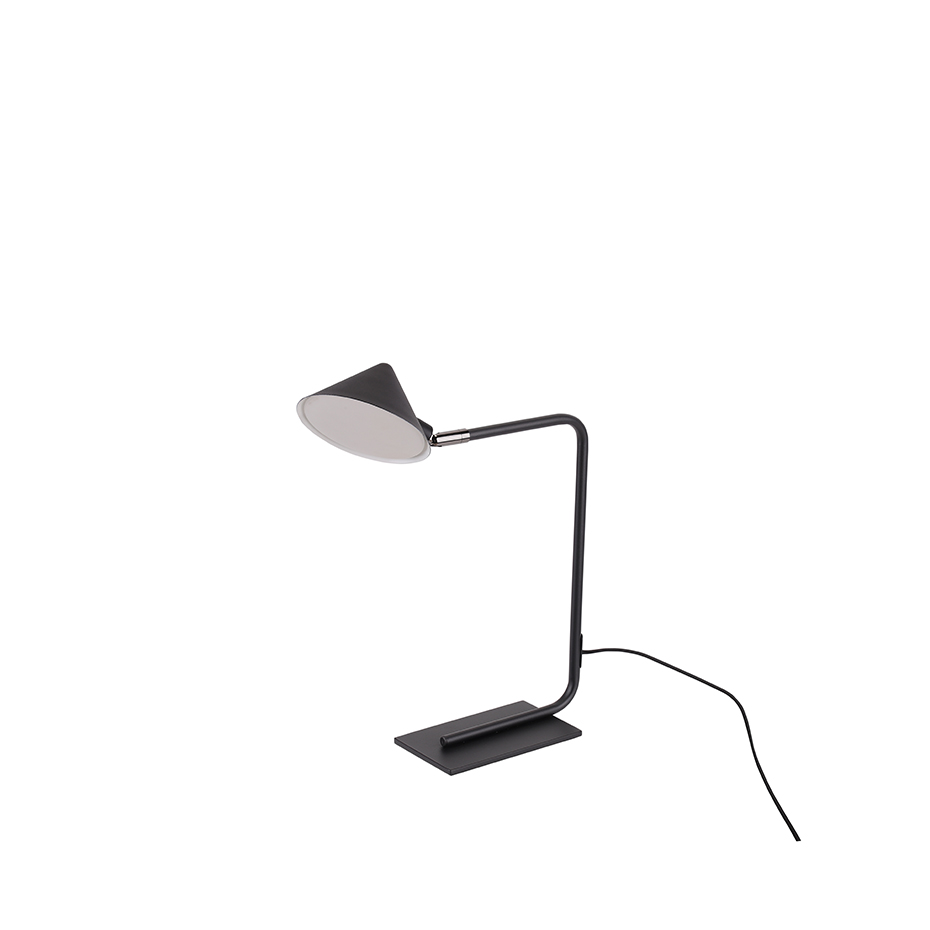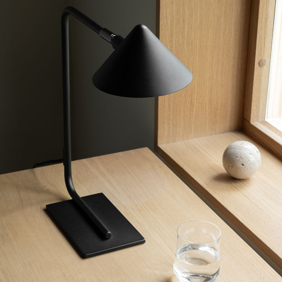 Kuro bordslampa från Watt & Veke kombinerar tidlös design med smart funktion. Den konformade skärmen i svart metall, detaljer i svart krom och svart textilsladd ger lampan ett stilrent och modernt uttryck. Den riktbara skärmen gör det enkelt att styra ljuset dit det behövs, medan den inbyggda dimmern låter dig justera ljusstyrkan från funktionellt arbetsljus till mjukt stämningsljus. Utrustad med bländskydd för behaglig ljusspridning.