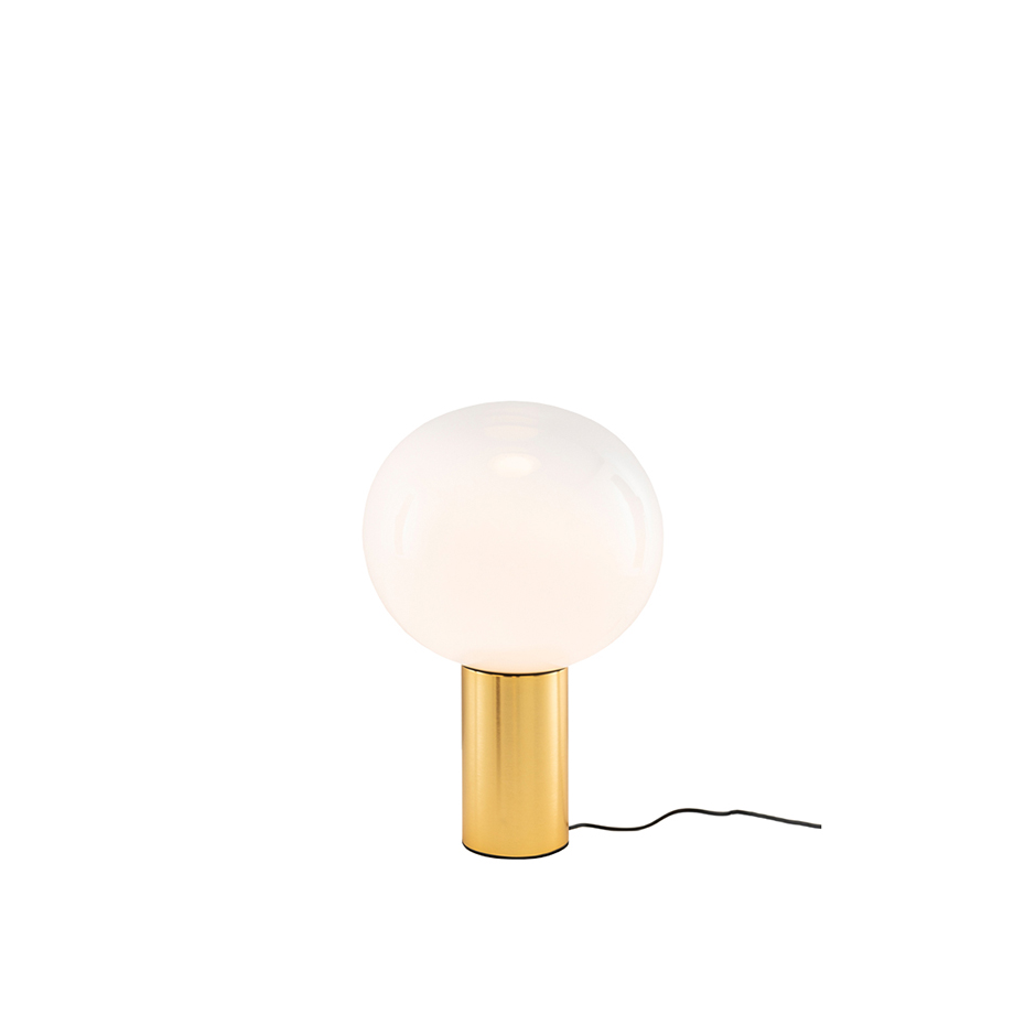 Laguna 37 Bordslampa från Artemide är en elegant bordslampa med en cylindrisk bas som döljer ljuskällan och bär upp den munblåsta glasskärmen. Den opalfärgade glaskupan med klar kant sprider ett mjukt ljus mot ytan eller väggen, samtidigt som den ger ett starkare och mer riktat sken ut i rummet. Resultatet är en balans mellan funktion och stämning, perfekt för både hem och offentliga miljöer.
