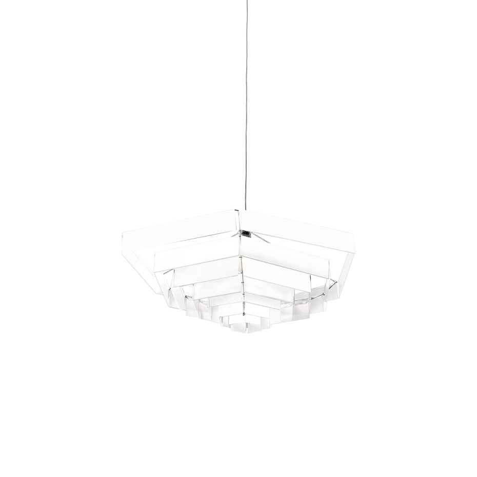 Lampada Esagonale 52 pendel från Artemide är en dekorativ taklampa med en geometrisk form som sprider ljuset jämnt i rummet. De hexagonala ringarna reflekterar ljuset i flera riktningar och skapar ett behagligt och stämningsfullt ljus. En pendel som kombinerar visuell effekt med funktionell allmänbelysning.