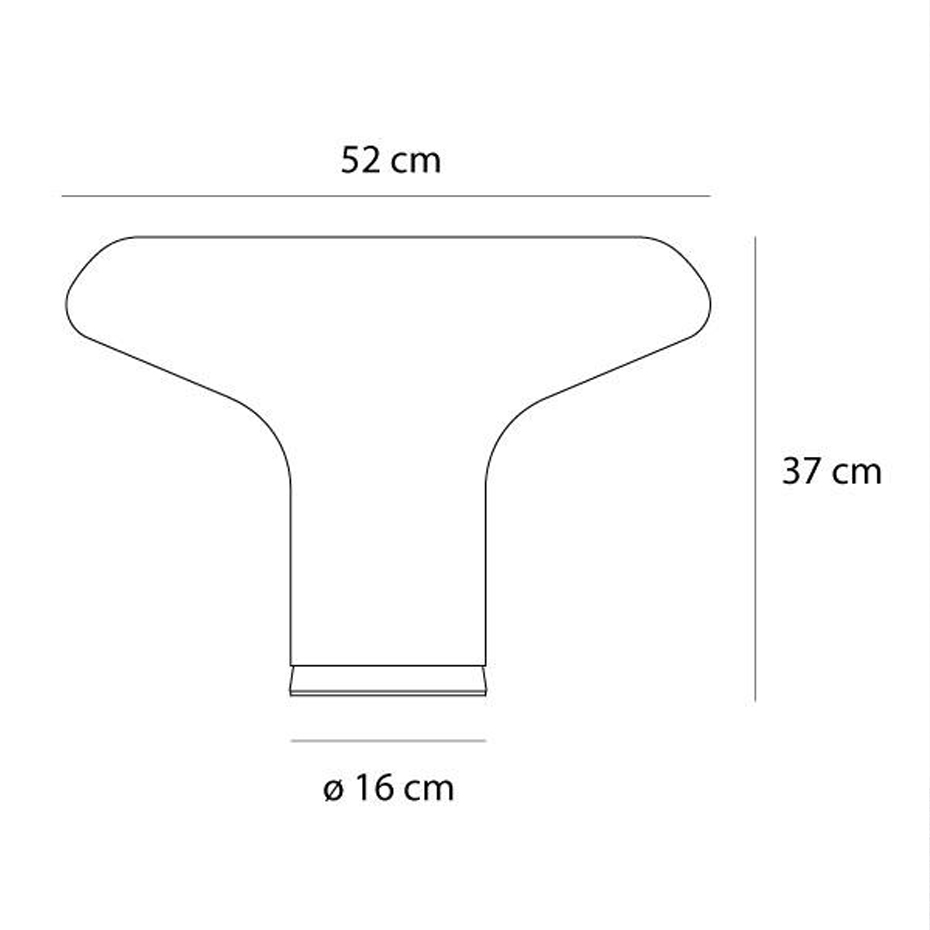 Den munblåsta glasskärmen skapar ett mjukt och stämningsfullt ljus där den frostade vita ytan döljer ljuskällan och leder ljuset uppåt. Resultatet blir ett harmoniskt sken som framhäver glasets form och elegans.