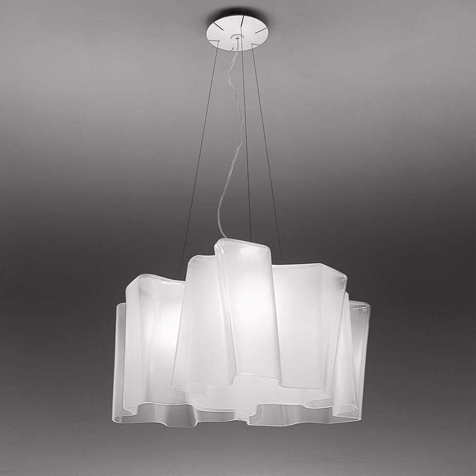 Logico 3x120° Mini Pendel från Artemide har tre skärmar i munblåst glas som formar en mjukt vågig och oregelbunden silhuett. De böljande linjerna skapar ett spel mellan ljus och skugga som ger lampan ett levande och organiskt uttryck.