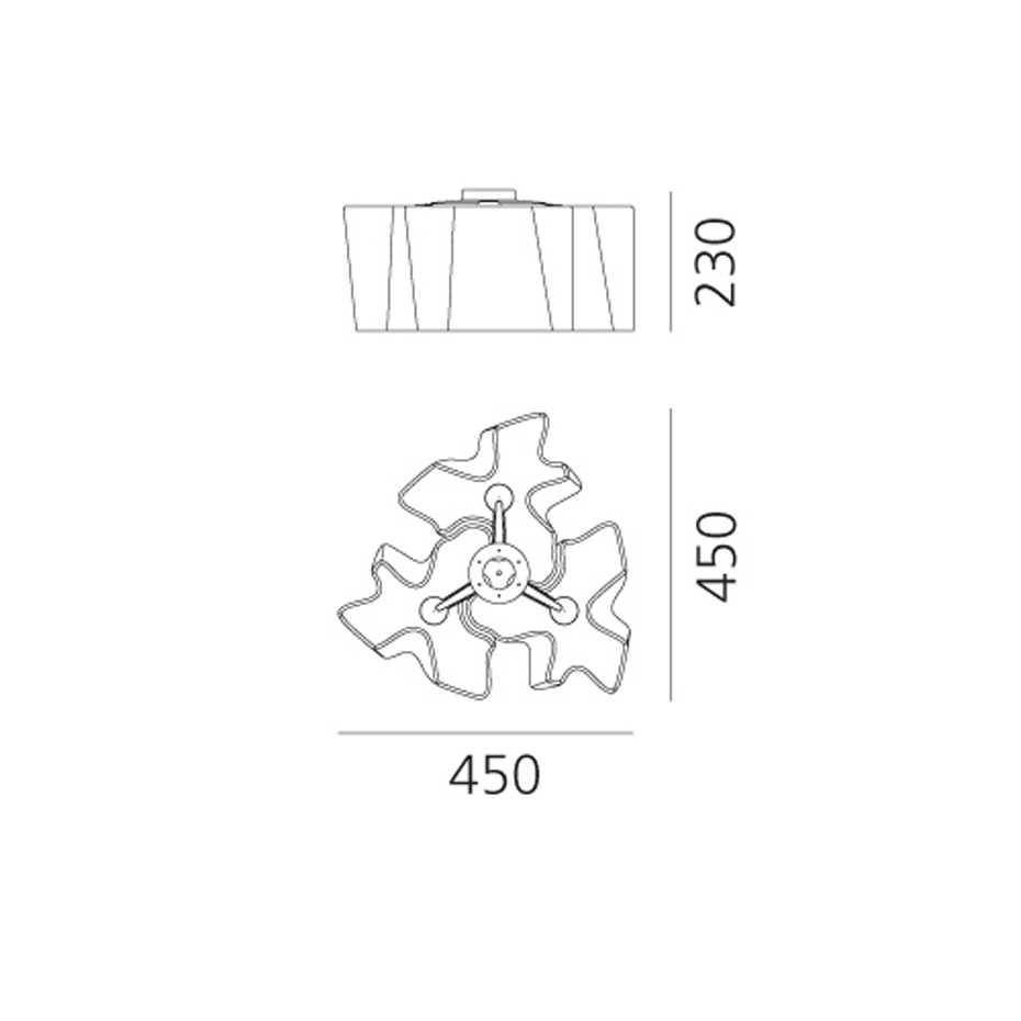 Bredd: 45 cm Djup: 45 cm Höjd: 23 cm IP-klass: 20 Ljuskälla: Ingår ej Material: Munblåst glas/Aluminium Montering: För fast montage Sockel: 3 x E27, Max 12 W