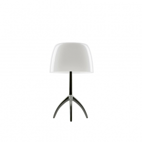 Lumiere Bordslampa Large (Grande) från Foscarini är den större och mer imponerande versionen av Rodolfo Dordonis hyllade designikon från 1990. Den generösa skärmen i munblåst Muranoglas sprider ett fylligt och behagligt ljus, vilket gör den idealisk för placering på ett större sidobord, en byrå eller som ett elegant blickfång i vardagsrummet.