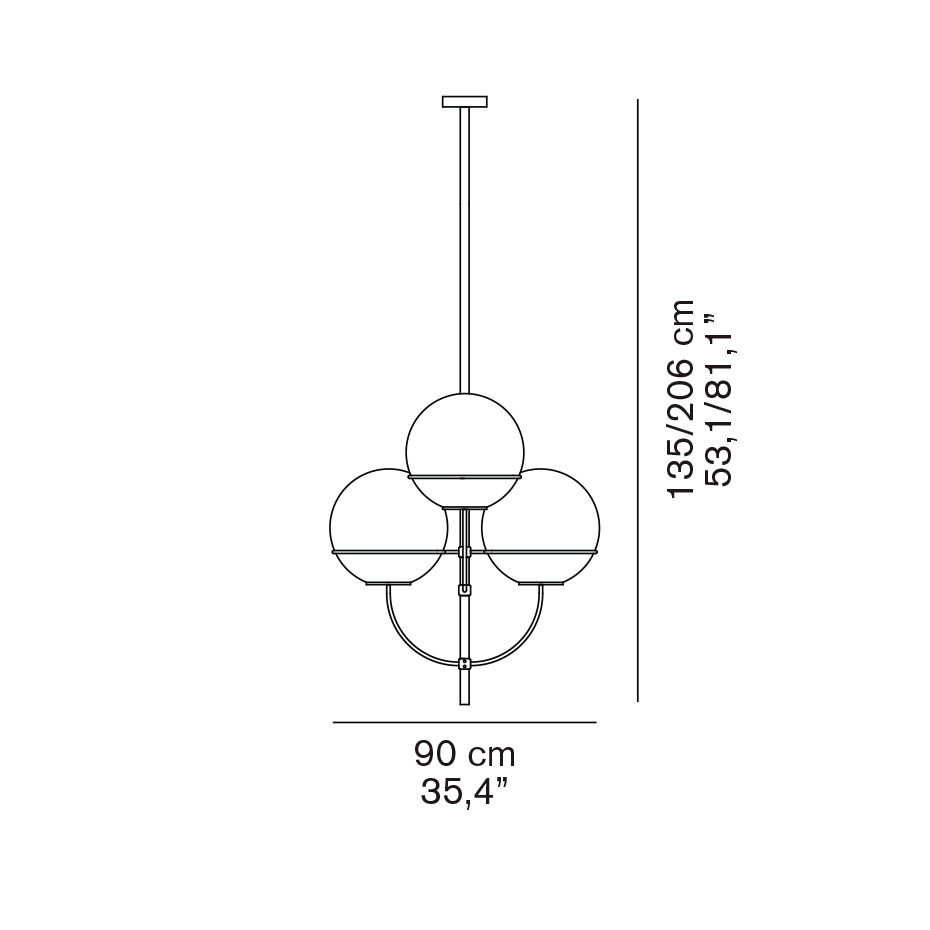 Diameter: 90 cm Höjd: 135/206 cm Ljuskälla: Ingår ej Material: Metall/Glas Sockel: 4 x E14, Max 100 W