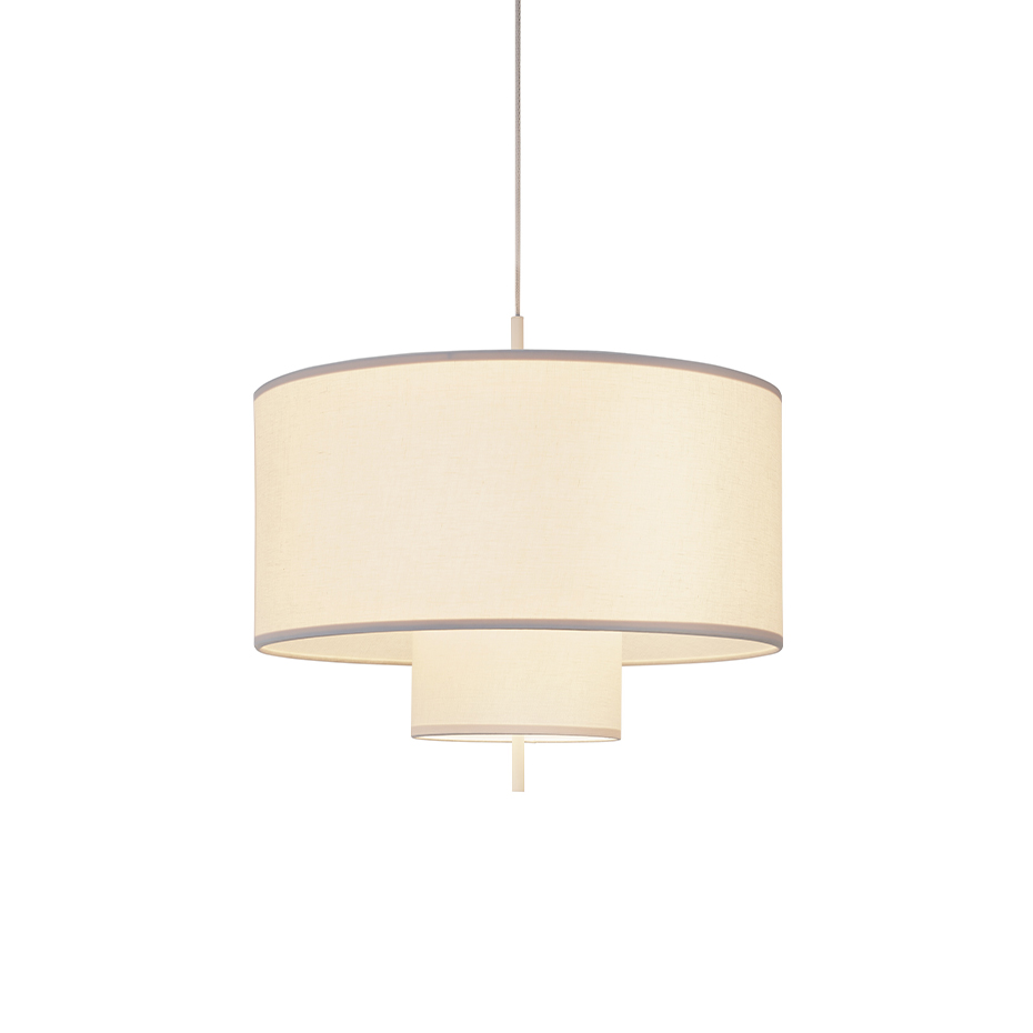 Margin Pendel Ø70cm från New Works är John Astburys moderna tolkning av den klassiska skärmlampan. De överlappande textilskärmarna sprider ett mjukt, varmt ljus och skapar en taktil atmosfär. Den grafiska silhuetten och de välbalanserade proportionerna gör lampan till ett elegant blickfång i rummet.