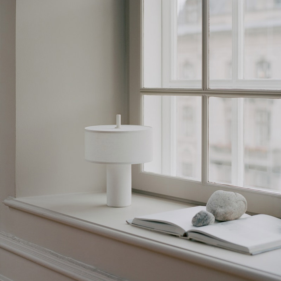 Margin Portable Bordslampa från New Works kombinerar klassisk design med modern portabilitet. Den mjuka linneskärmen sprider ett varmt, stämningsfullt ljus som enkelt kan justeras med touchdimmer och tre färgtemperaturer. Trådlös och flexibel – perfekt på nattduksbordet, i bokhyllan eller på fönsterbrädan.