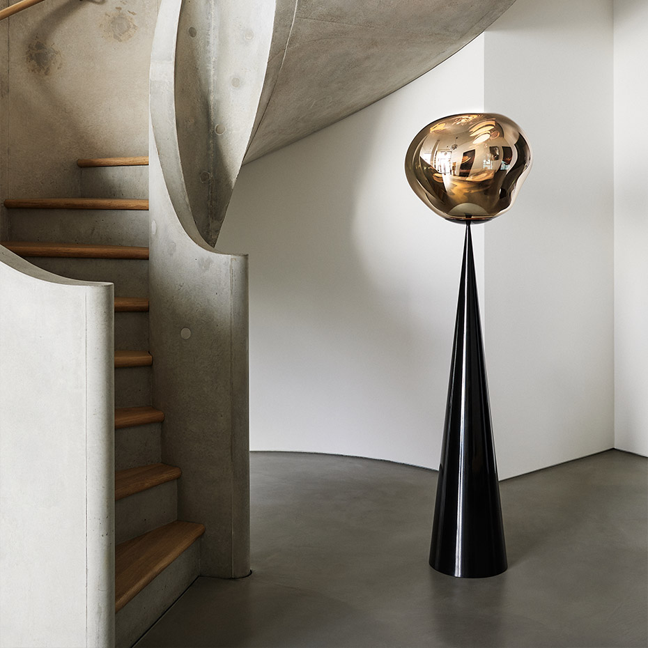 Melt Cone Fat är en golvlampa från Tom Dixon som kombinerar den ikoniska Melt-skärmen med en stabil, konformad bas. Den spegelblanka ytan förändras när lampan tänds och skapar ett organiskt ljusspel. Ett starkt visuellt inslag i vardagsrum, lounge eller hotellmiljö.