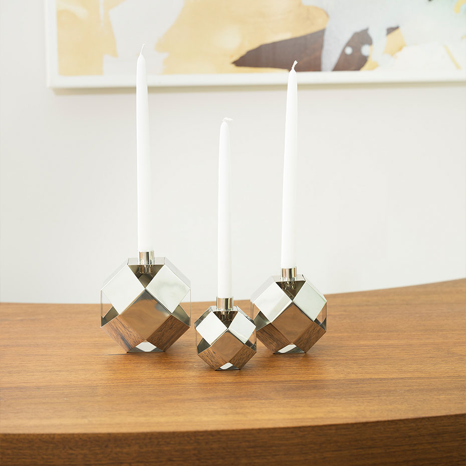 Merkurius Ljushållare från Klong är en elegant ljusstake i rostfritt stål. Den sfäriska formen reflekterar ljuset vackert och gör sig lika bra ensam som i grupp.