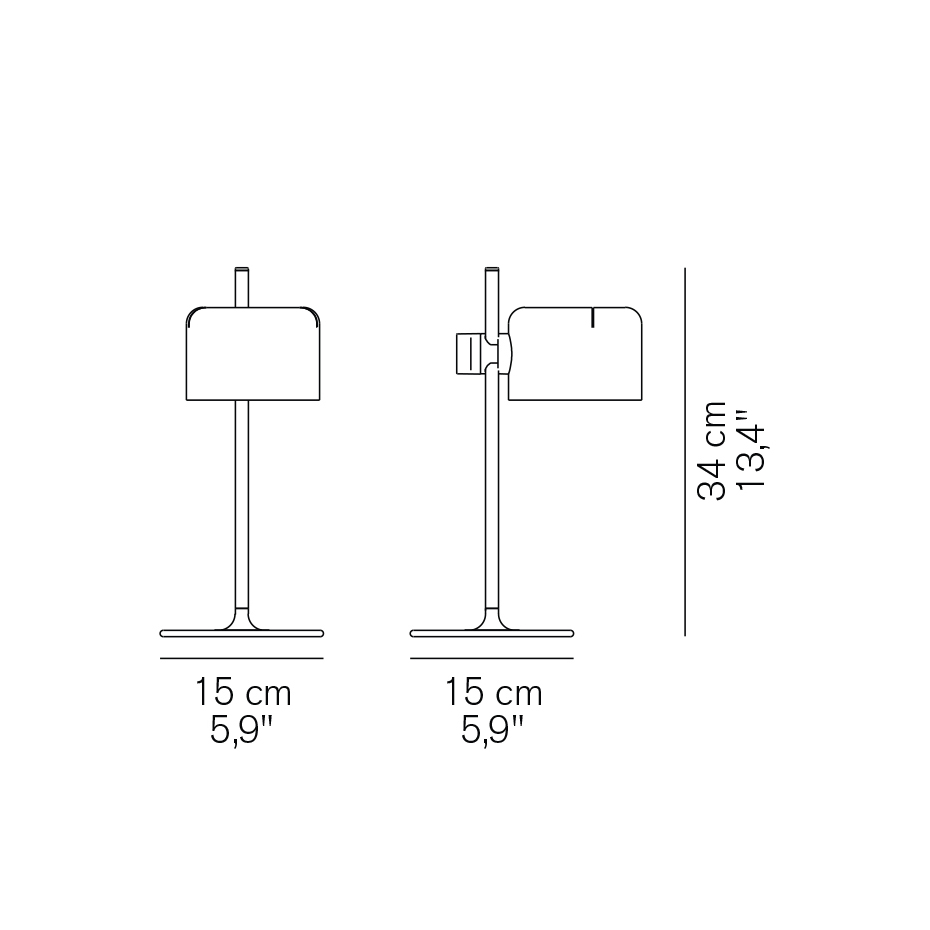 Mini Coupé 2201 bordslampa från Oluce formgavs av Joe Colombo år 1967. Lampan ger ett fokuserat direktljus och har en justerbar skärm som enkelt riktas dit du behöver den. Den ikoniska siluetten gör Mini Coupé 2201 till ett stilrent val för skrivbord, sidobord och andra ytor där du vill kombinera funktion med klassisk design.