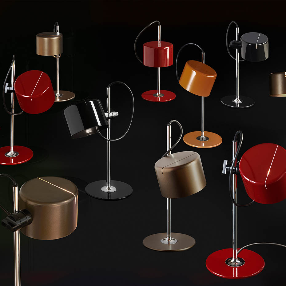 Mini Coupé 2201 bordslampa från Oluce formgavs av Joe Colombo år 1967. Lampan ger ett fokuserat direktljus och har en justerbar skärm som enkelt riktas dit du behöver den. Den ikoniska siluetten gör Mini Coupé 2201 till ett stilrent val för skrivbord, sidobord och andra ytor där du vill kombinera funktion med klassisk design.