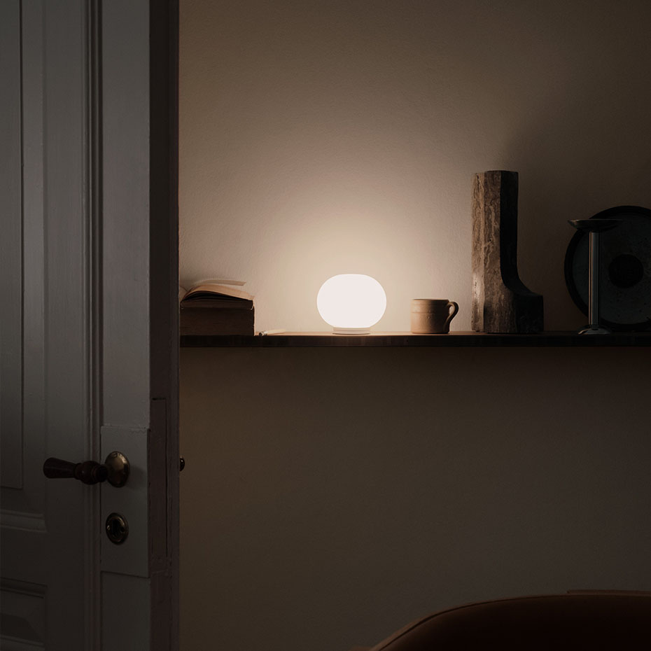Första lampan i Glo-ball serien ritades 1998 av engelsmannen Jasper Morrison. Den blev snabbt en storsäljare och därefter har serien vuxit med fler modeller och storlekar. Lampan ger ett mjukt och behagligt ljus - och blir extra bra tillsammans med en dimmer.