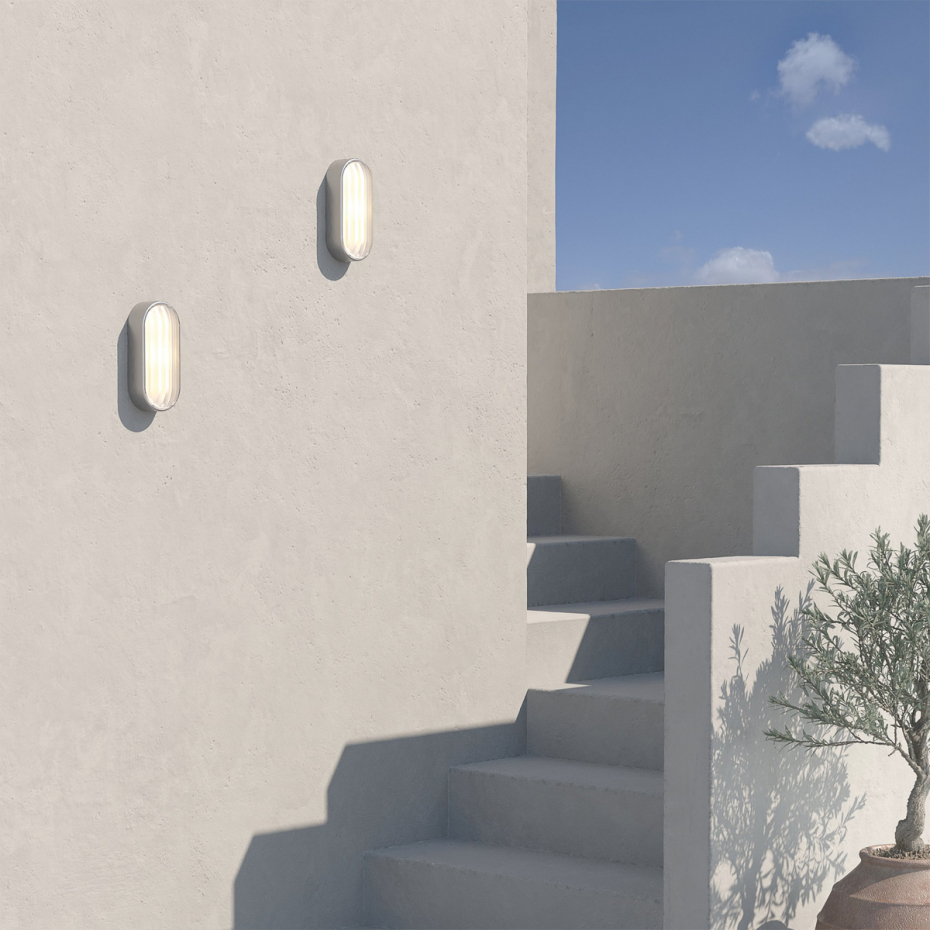 Montreal Oval Coastal Vägglampa från Astro Lighting är en unik designlampa i pressat, räfflat glas med en form som ger en modern tolkning av den klassiska skeppsarmaturen. Denna karaktärsfulla armatur sprider en varm och omslutande ljussättning med ett industriellt men mjukt uttryck, tack vare sin mjukt rundade profil. Med sin robusta konstruktion i rostfritt stål av marin kvalitet (316) och IP44-klassning är Montreal idealisk för att lysa upp stigar eller fasader även i krävande miljöer, och skapa ett personligt uttryck i utomhusmiljön.