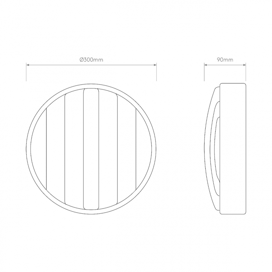 Diameter: 30 cm Djup: 9 cm IP-klass: 44 Ljuskälla: Ingår ej Material: Rostfritt stål/Sandblästrat glas Montering: För fast montage Sockel: E27, Max 12 W LED Övrigt: Tillverkad av slitstarkt material som lämpar sig för hårt väder.
