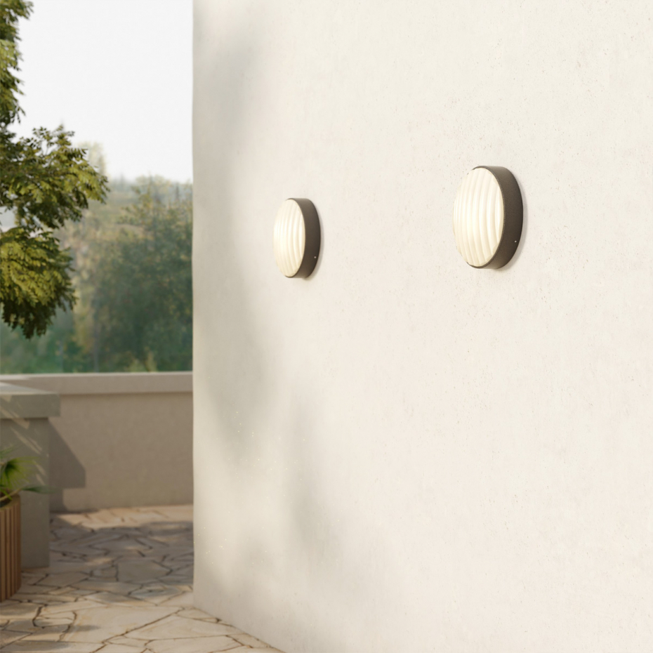 Montreal Round 300 Vägglampa från Astro Lighting är en unik designlampa i pressat, räfflat glas med en generös rund form som ger en modern tolkning av den klassiska skeppsarmaturen. Denna karaktärsfulla armatur sprider en varm och omslutande ljussättning med ett industriellt men mjukt uttryck, tack vare sin stora cirkulära profil. Med sin robusta konstruktion i texturerat svart och IP44-klassning är Montreal 300 idealisk för att skapa ett effektfullt blickfång på större fasader eller uteplatser och ge ett personligt uttryck i utomhusmiljön.