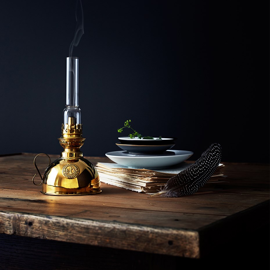 Nattlampan från Karlskrona Lampfabrik är en vacker fotogenlampa som passar utmärkt som alternativ till en vanlig ljusstake. Nattlampan har ett dekorativt förnicklat mässingsoljehus. Ljusstyrkan motsvarar ungefär ljusstyrkan hos sex stycken stearinljus. - Specifikationer