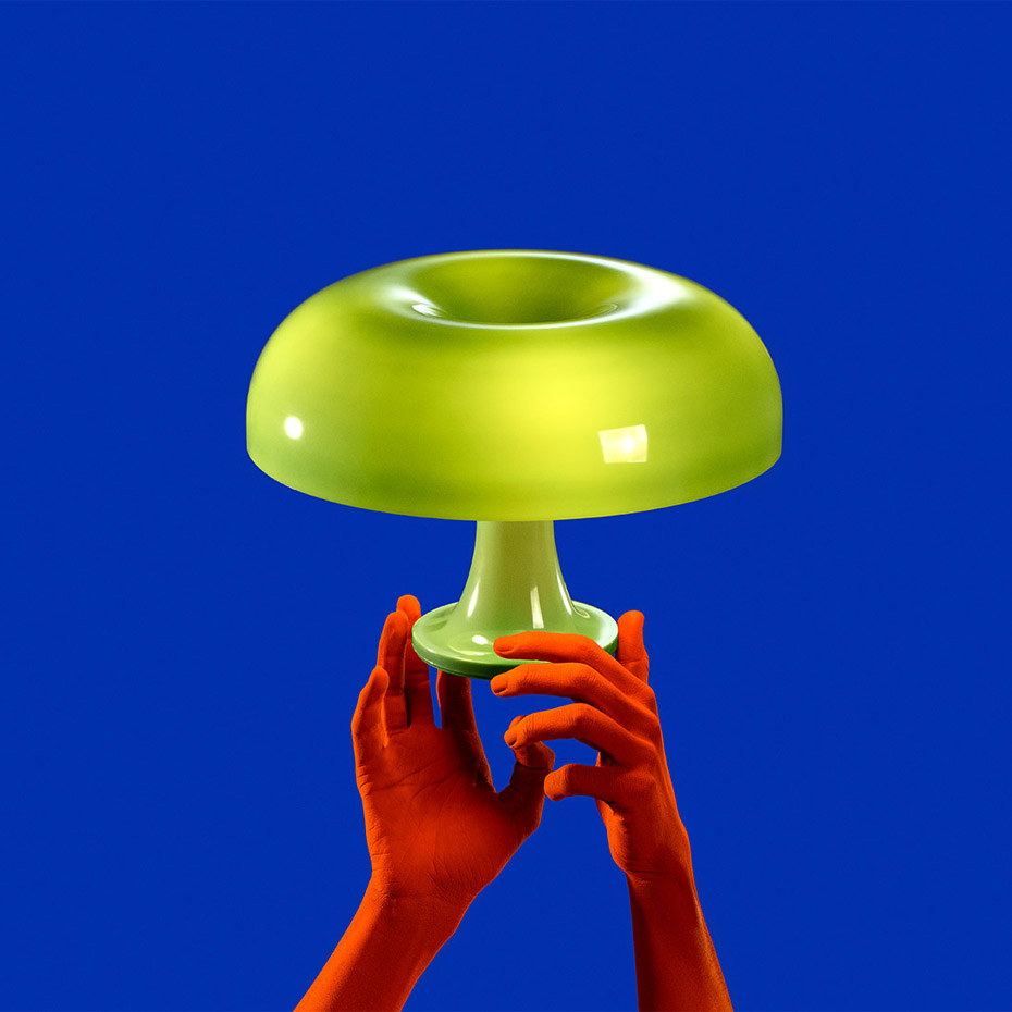 Nessino Bordslampa från Artemide är en ikonisk italiensk designklassiker från 1960-talet, skapad under en tid då plasten öppnade nya möjligheter för form och funktion. Med sin organiska form inspirerad av naturen utmanade den dåtidens tillverkningsmetoder och symboliserade övergången till det moderna hemmet.