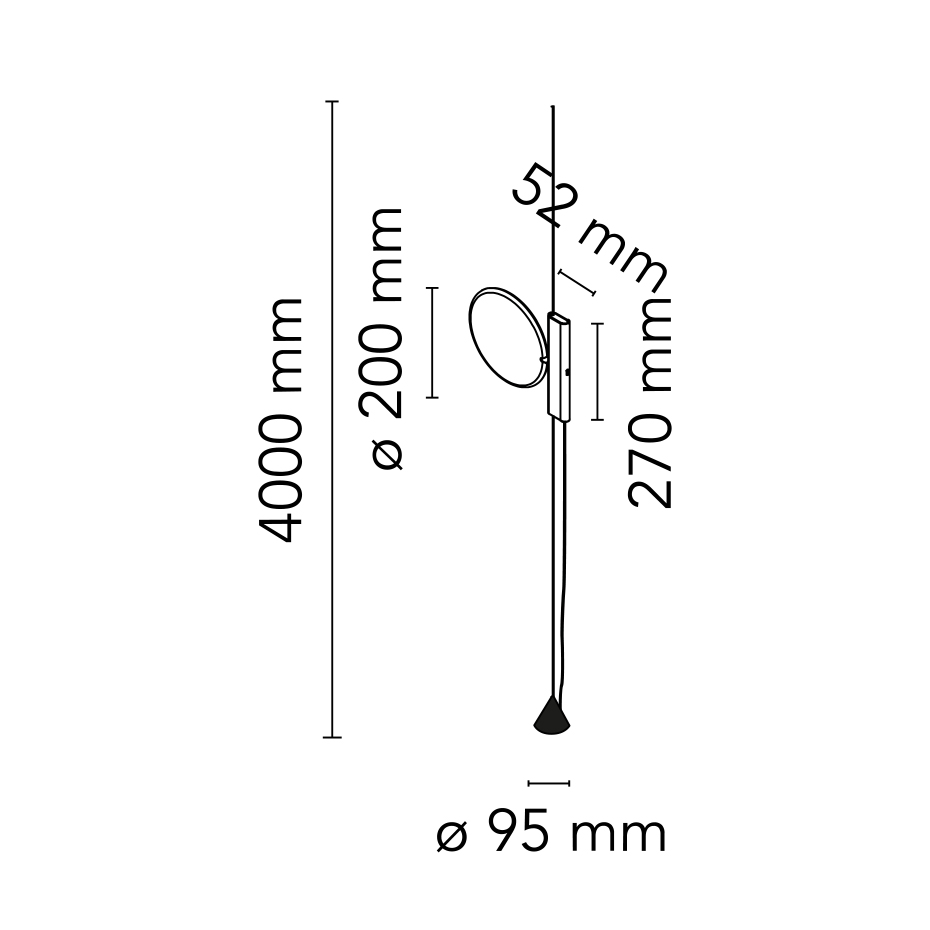Denna spektakulära armatur kan du flytta vertikalt på stålvajern som du spänner upp mellan tak och golv (användbar längd 4000 mm). Den är dimbar och ger ett direkt ljus.