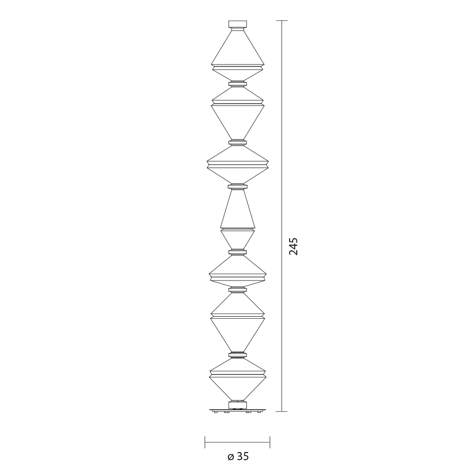 Diameter: 35 cm Höjd: 245 cm Ljuskälla: Ingår Material: Metall/Textil Sladdlängd: 2 m Sockel: 2 x LED Strip, 21 W 2700 K