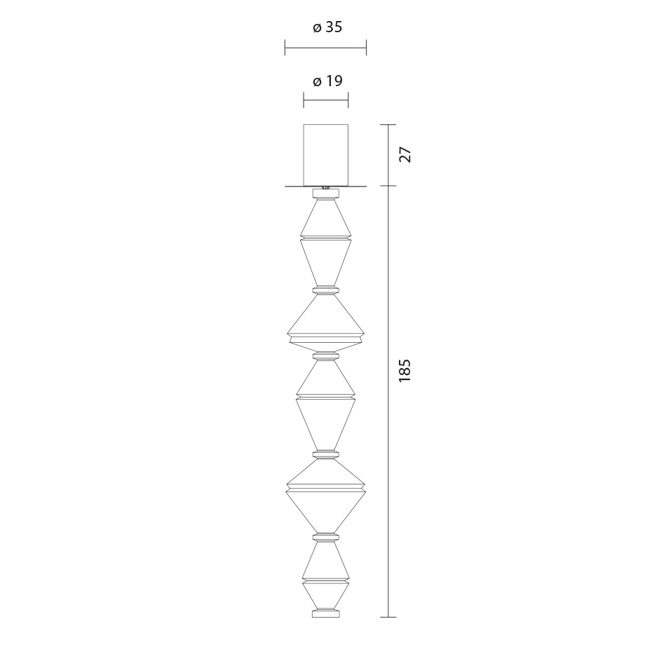 Diameter: 35 cm Höjd: 212 cm Ljuskälla: Ingår Material: Metall/Textil Sockel: 2 x LED Strip, 15 W 2700 K