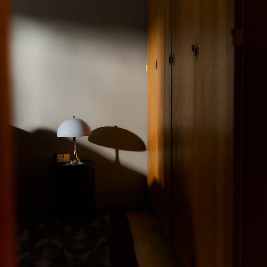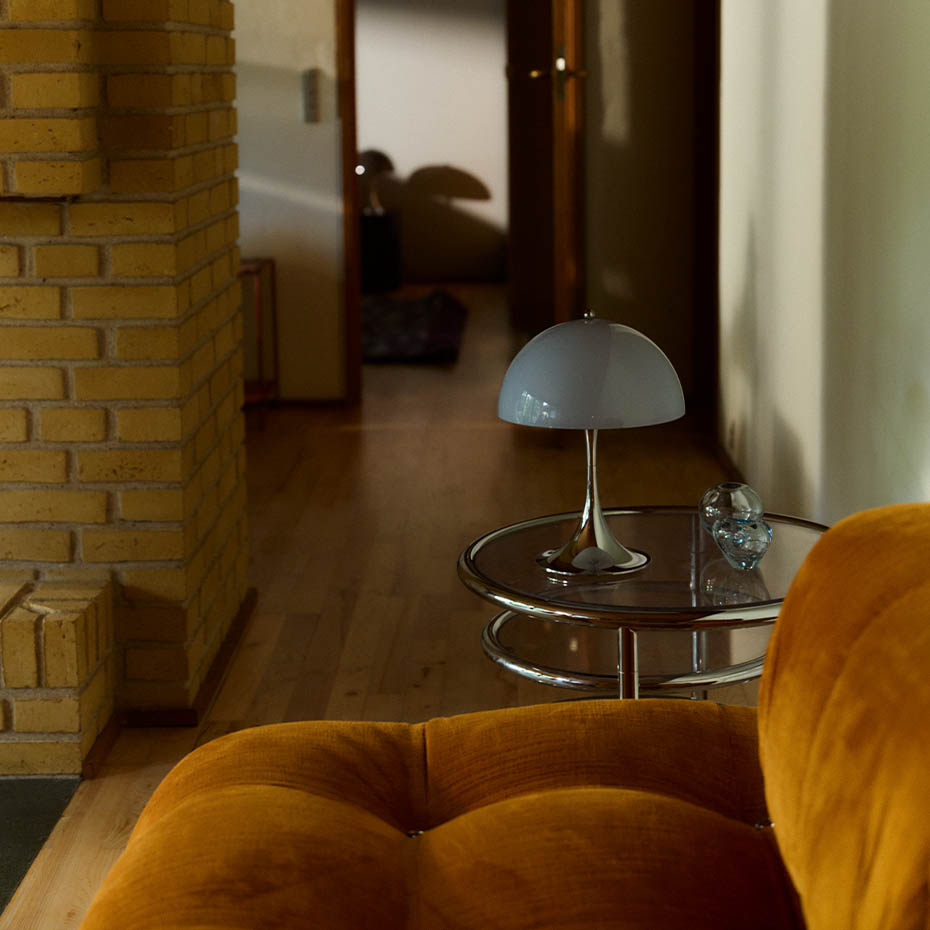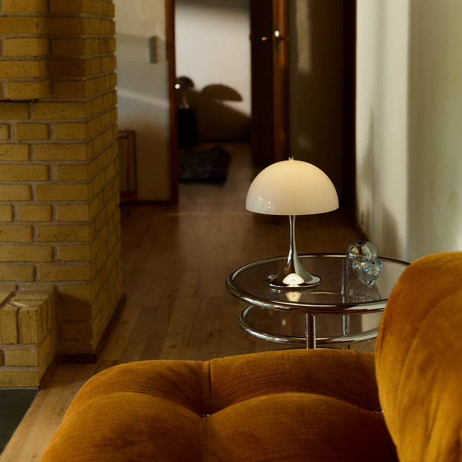 Panthella formgavs av Verner Panton 1971 och är fortfarande en av hans mest populära lampor. De organiska formerna är typiska för hans design. Panthella ger ett mycket behagligt och mjuk ljus, där både foten och skärmen fungerar som en ljusreflektor.