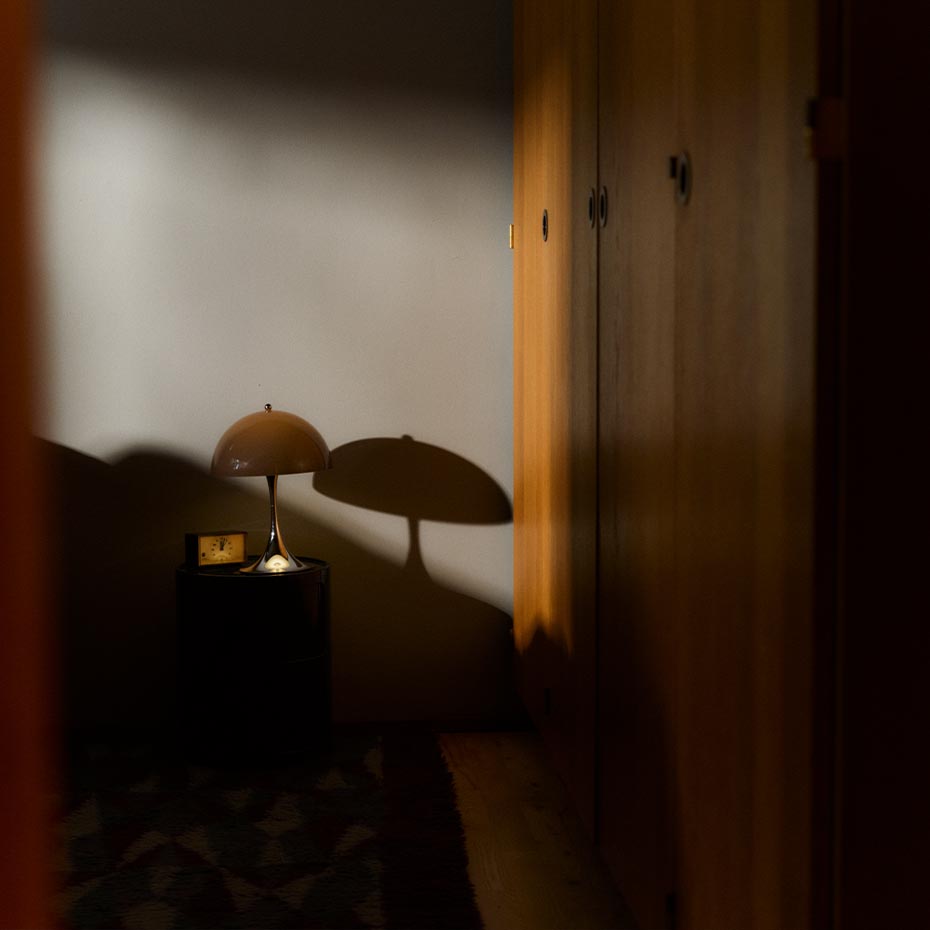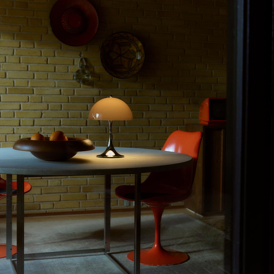 Panthella formgavs av Verner Panton 1971 och är fortfarande en av hans mest populära lampor. De organiska formerna är typiska för hans design. Panthella ger ett mycket behagligt och mjuk ljus, där både foten och skärmen fungerar som en ljusreflektor.