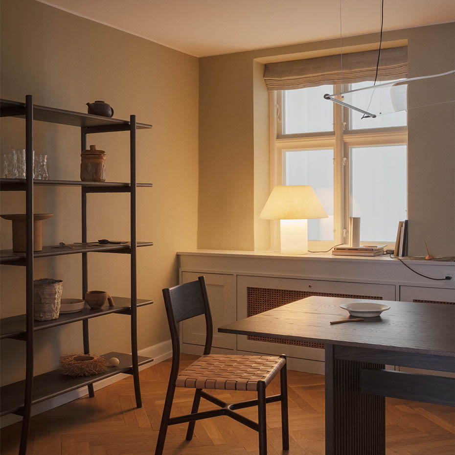 Petra M GR bordslampa från Parachilna är en stilren bordslampa med en skulptural form där både fot och skärm är tillverkade i alabaster. Lampan sprider ett mjukt, varmt ljus som skapar en lugn och elegant atmosfär. En tidlös design som fungerar lika fint på sidobord, byrå eller nattduksbord.