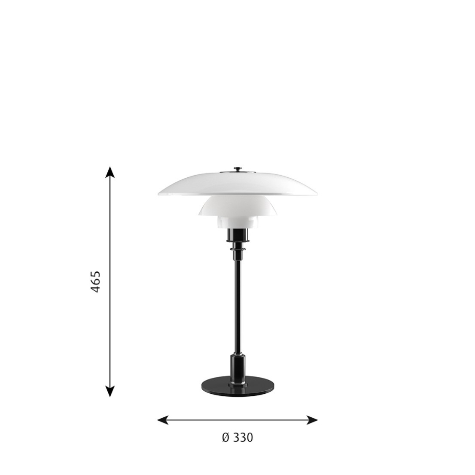 PH´s treskärmsfamilj är väl genomtänkta lampor av Poul Henningsen. Hans unika belysningsfilosofi har i alla tider inspirerat belysningsbranschen. Det munblåsta opalglaset har en blank utsida och sandblästrad insida och ger ett mjukt, diffust ljus. Lampan är en tidlös klassiker som passar i alla typer av miljöer.