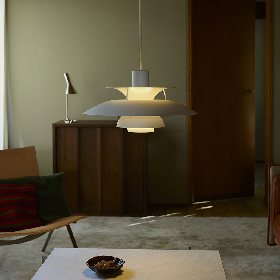 PH 5-lampan formgiven av Poul Henningsen 1958 för Louis Poulsen har fått en ny grafisk look med den nya Monochrome serien. PH 5 erbjuds nu i tre nya matta färger, vit, svart och ultrablå. Samma funktion och klassiska formgivning men med nya härliga färger.