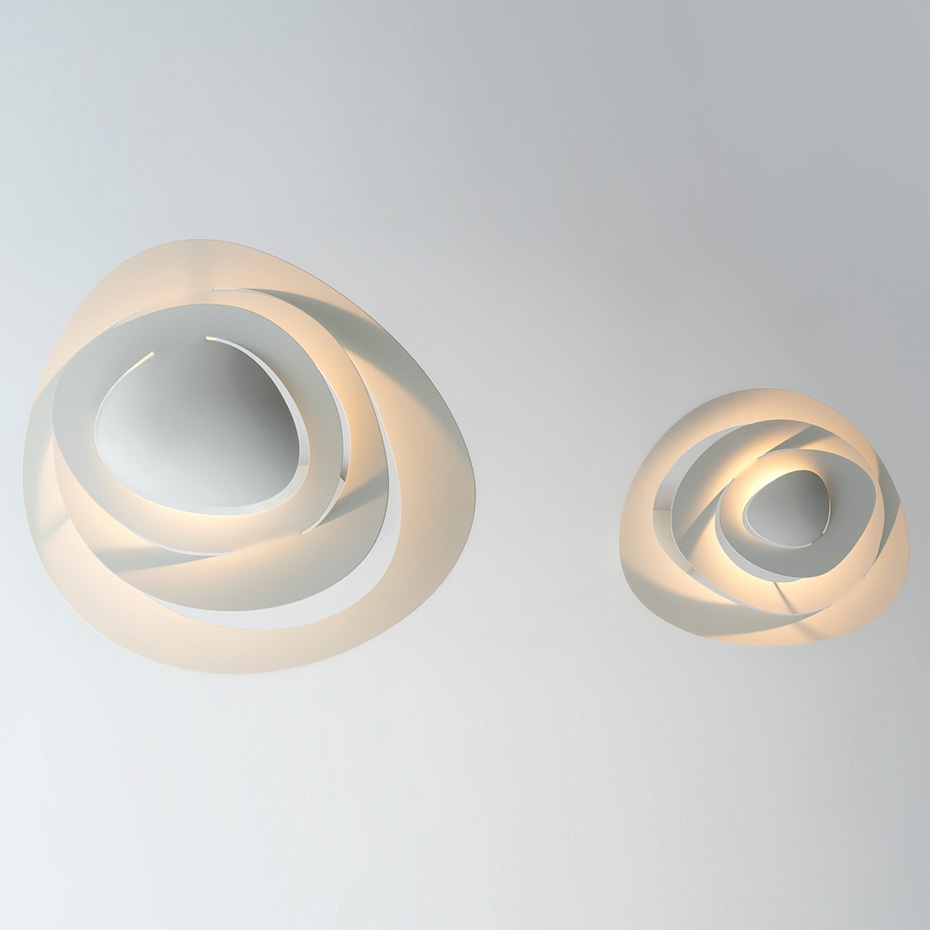 Pirce Mini Pendel från Artemide är en prisbelönt pendellampa och en av Artemides mest ikoniska designklassiker. Lampan består av en slimmad aluminiumskiva som elegant övergår i mjuka, spiralformade virvlar som fångar ljuset och skapar vackra ljuseffekter i rummet.