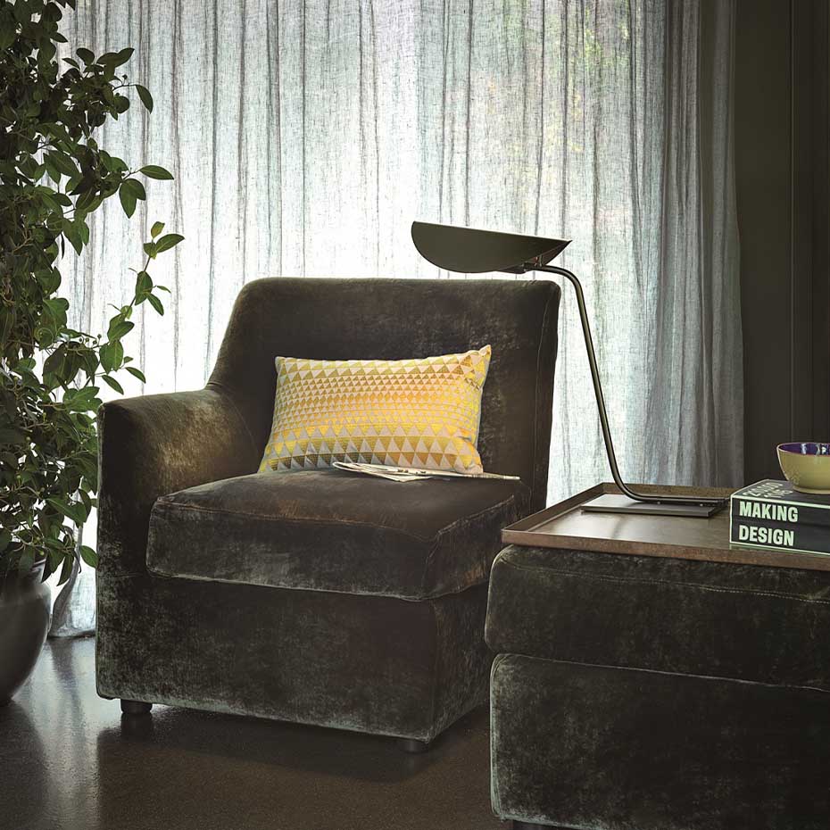 Plume 221 bordslampa från Oluce formgavs av Christophe Pillet år 2017. Bordslampan har en tidlös design med indirekt ljus och en elegant, böjd metallstruktur som sprider ett mjukt och behagligt ljus. Plume 221 är perfekt för både stämningsfull belysning och som stilfull detalj på bord eller hylla.