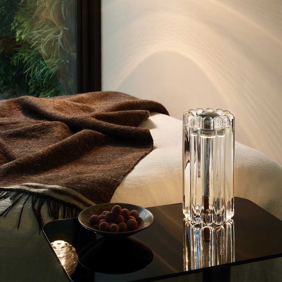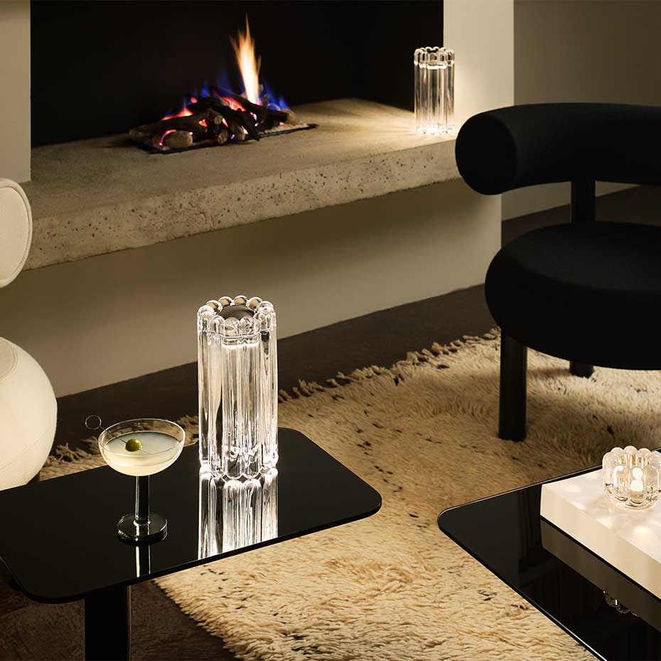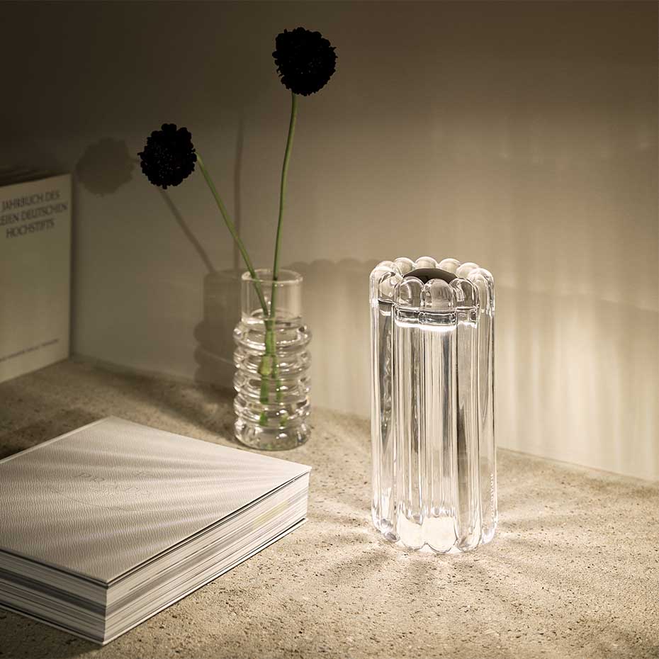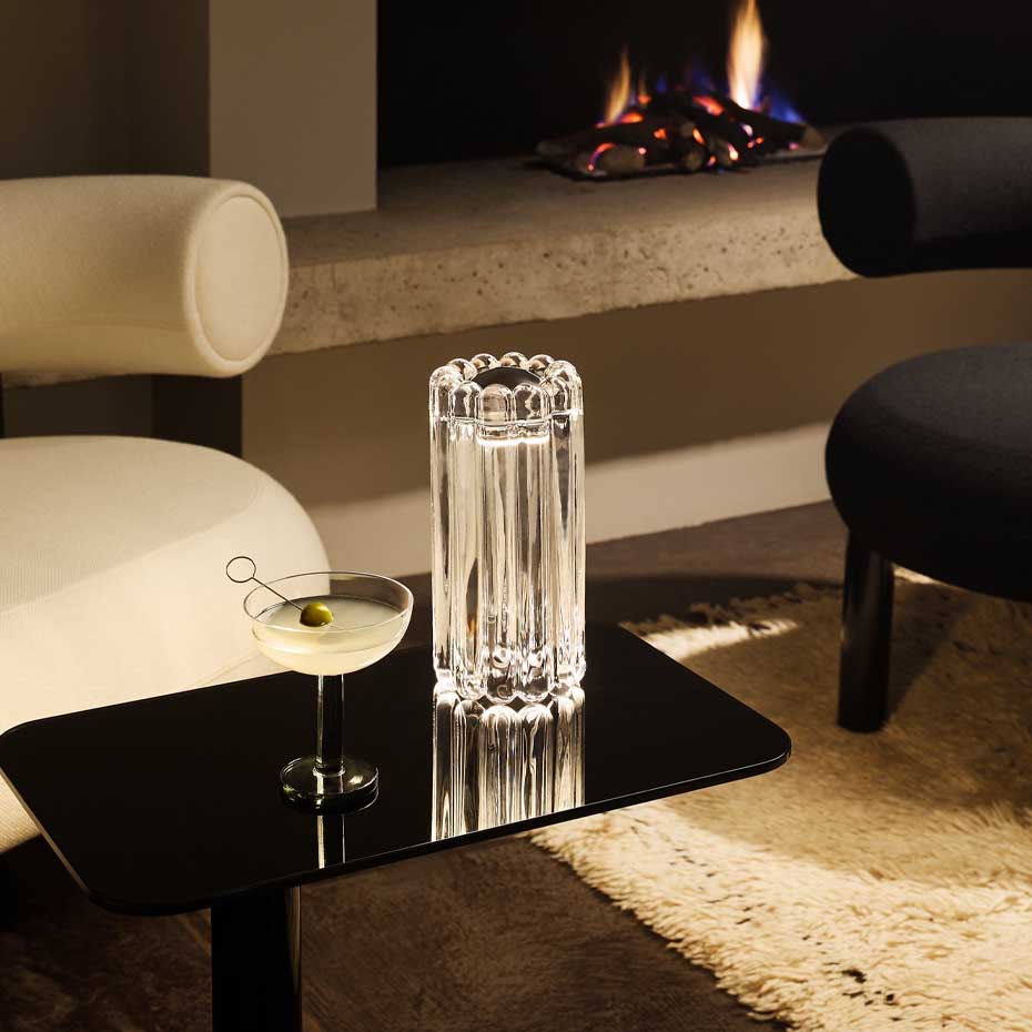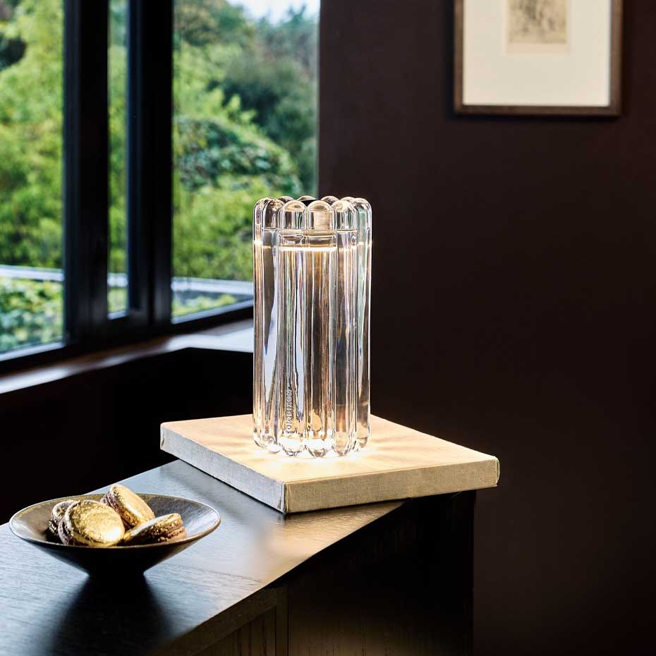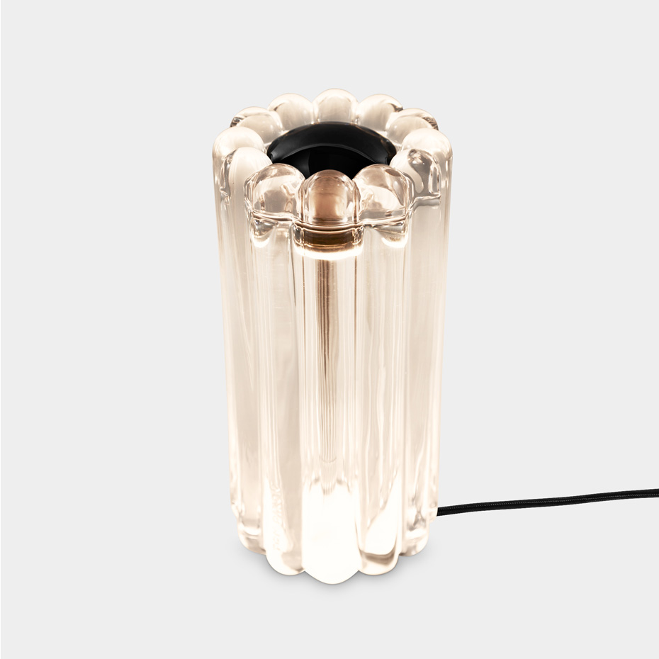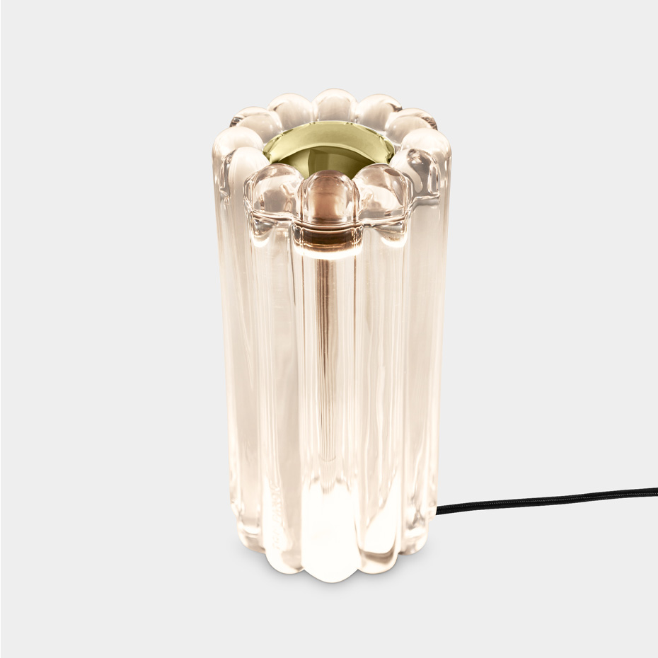 Press LED Bordslampa från Tom Dixon är en exklusiv bordslampa i pressat, transparent glas som fångar och bryter ljuset på ett magiskt sätt. Den levereras med tre utbytbara metallkåpor i färgerna guld, silver eller svart – perfekt för att matcha din inredning.