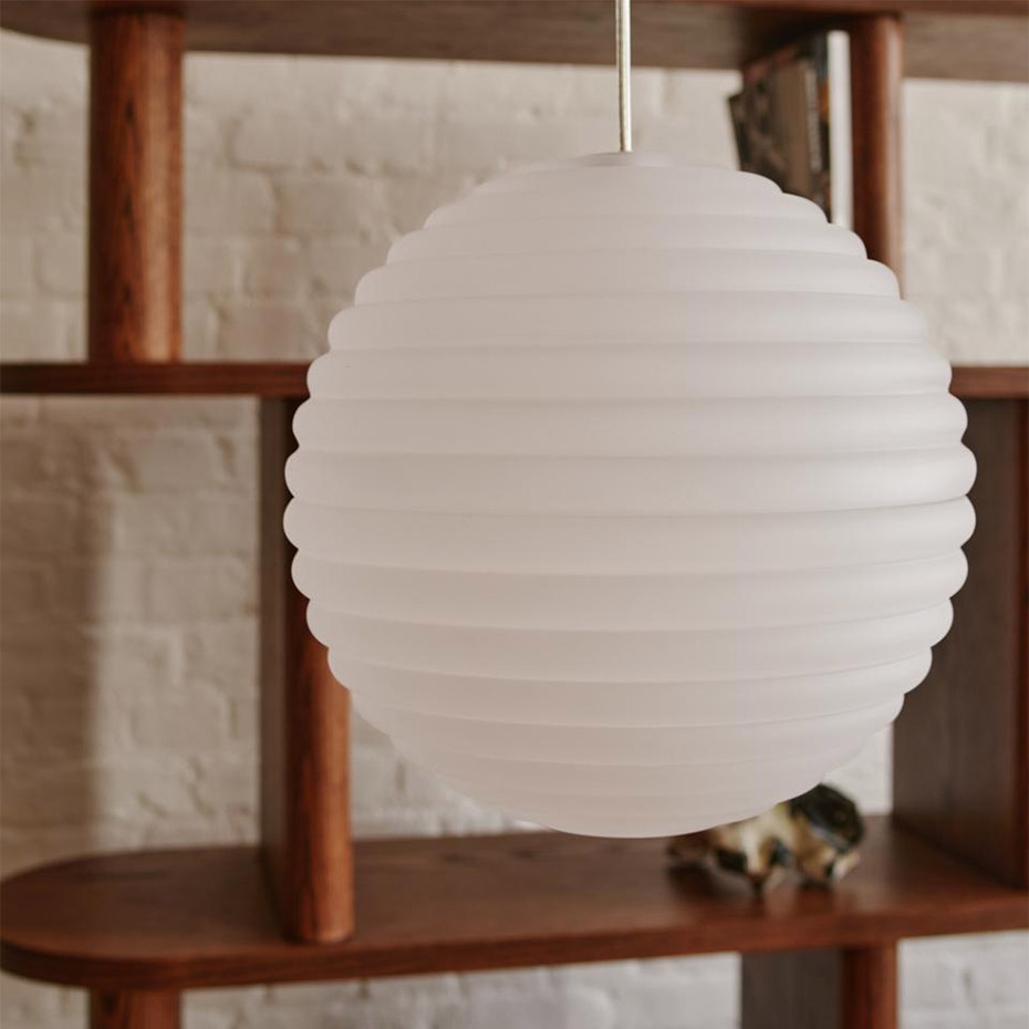 Press Medium Sphere Pendel från Tom Dixon har en mjukt rund form inspirerad av marina bojar och sprider ett varmt, behagligt ljus. Den frostade ytan ger ett jämnt och stämningsfullt sken som passar lika bra över matbordet som i vardagsrum eller entré. Pendellampan är effektfull både ensam och i grupp och är ett utmärkt val för dig som söker modern pendelbelysning med ikonisk design och tidlös karaktär.