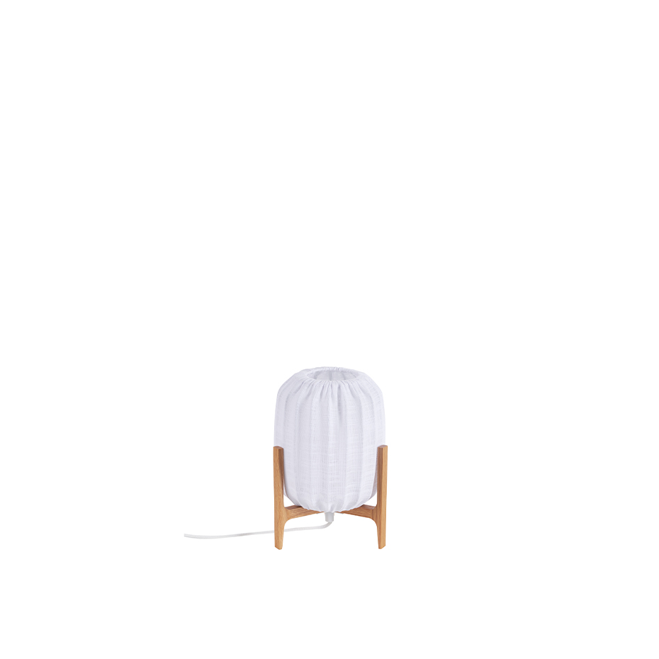 Diameter: 16 cm (skärm), 17,5 cm (fot) Höjd: 24 cm Ljuskälla: Ingår ej Material: Ek/Linnetyg Sladdlängd: 2,5 m Sockel: E14, Max 10 W LED Övrigt: Dimmer på sladden