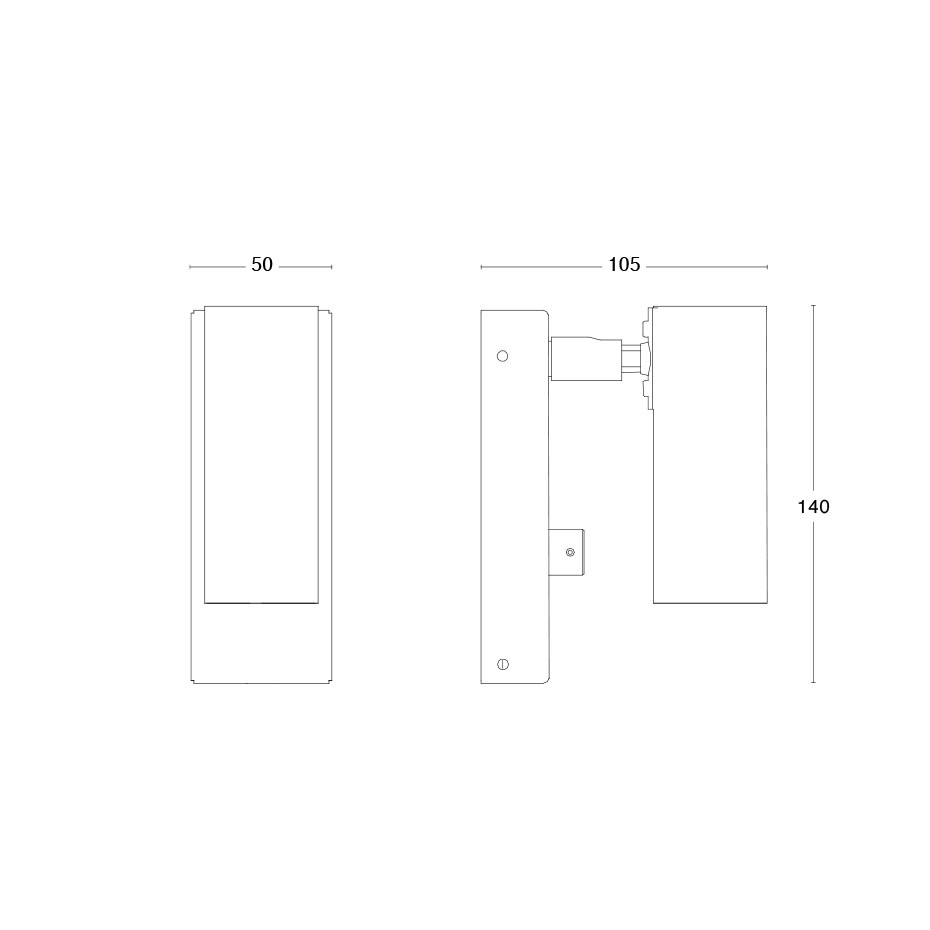 Bredd: 5 cm Djup: 10,5 cm Höjd: 14 cm Ljuskälla: Ingår Material: Lackerad metall Montering: För fast montage Sockel: GU10, LED MR11 Mini 280 lm 2700 K Övrigt: Dimmer på armaturen