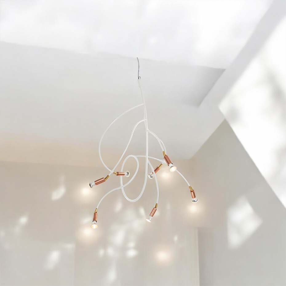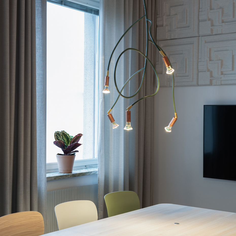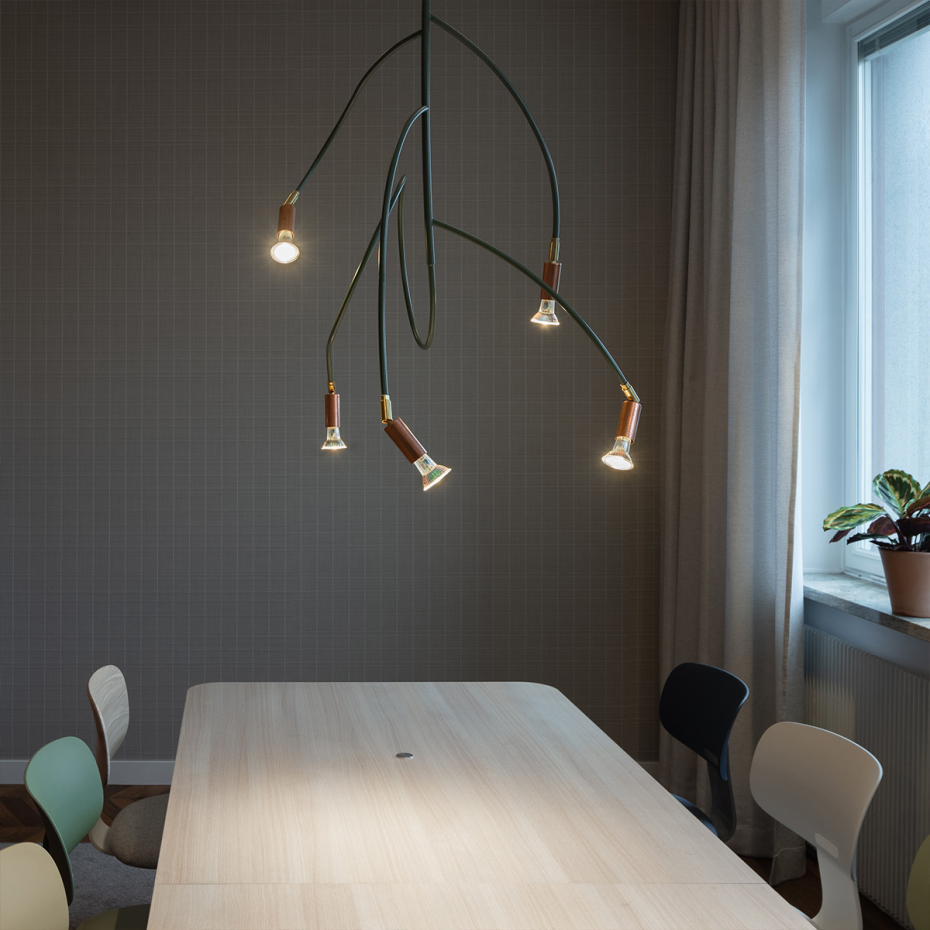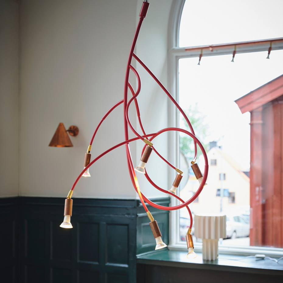 Ranka är en pendellampa som kombinerar organisk form med tidlös design. Inspirerad av en klätterväxt slingrar sig Ranka genom rummet och skapar både rörelse och stämning. Lampan finns i två storlekar med fem eller sju ljuspunkter, vilket gör den idealisk som belysning över matbordet, i vardagsrummet eller som en stilfull detalj i en lounge.