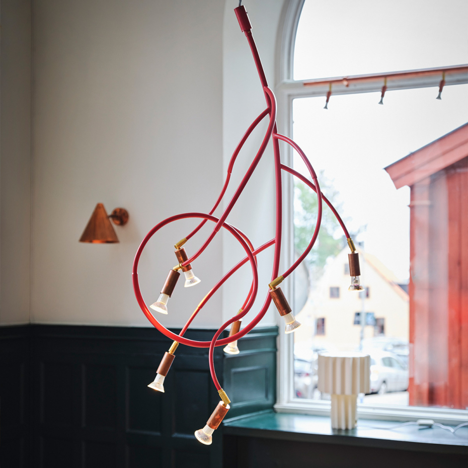 Ranka är en pendellampa som kombinerar organisk form med tidlös design. Inspirerad av en klätterväxt slingrar sig Ranka genom rummet och skapar både rörelse och stämning. Lampan finns i två storlekar med fem eller sju ljuspunkter, vilket gör den idealisk som belysning över matbordet, i vardagsrummet eller som en stilfull detalj i en lounge.