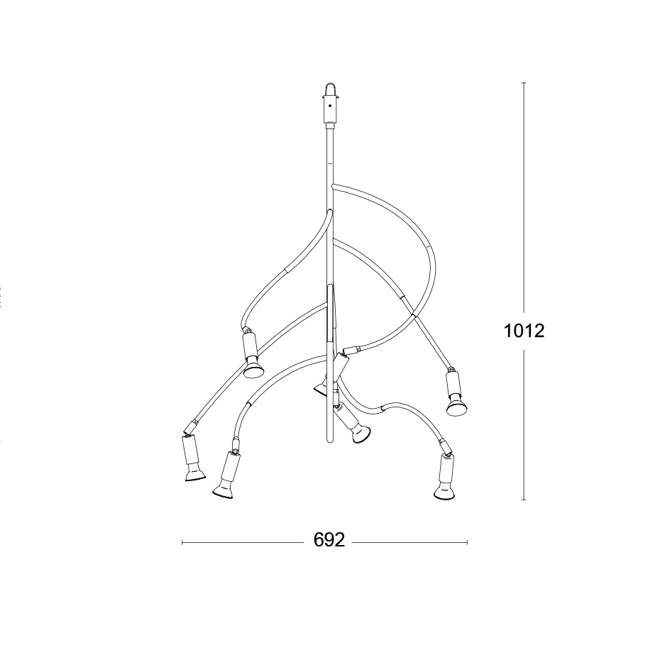 Diameter: 69,2 cm Höjd: 101,2 cm Ljuskälla: Ingår ej Material: Lackerad metall/Mässing/Koppar Sladdlängd: 2,5 m Sockel: 7 x E14, Max 40 W Övrigt: Har textilkabel och vajerupphäng