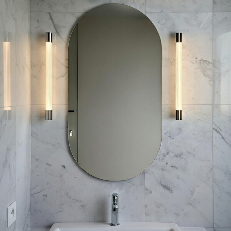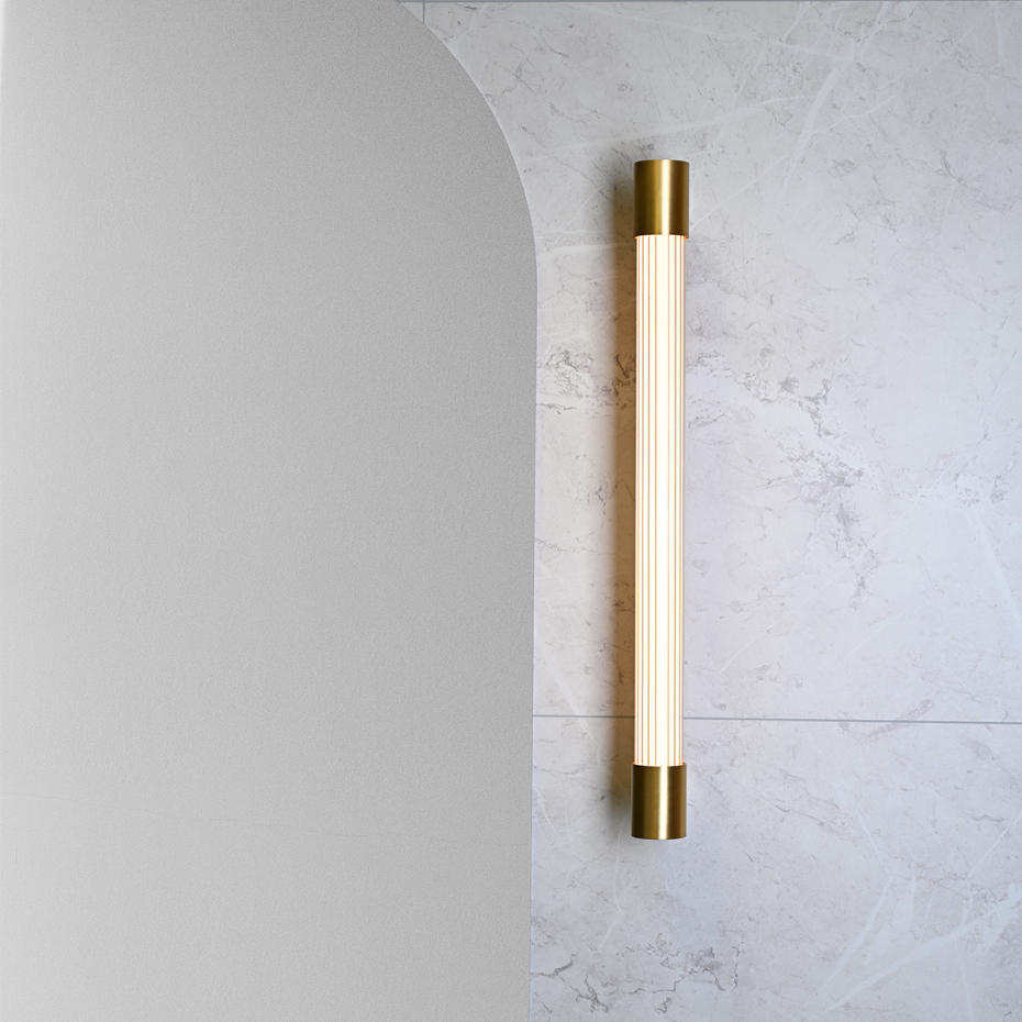 Ray Vägglampa från Örsjö Belysning är den perfekta kombinationen av lyxig Art Deco och modern skandinavisk design. Med sitt vackert räfflade glas och detaljer i äkta borstad mässing ger denna badrumslampa ditt hem en sofistikerad hotellkänsla som aldrig går ur tiden.