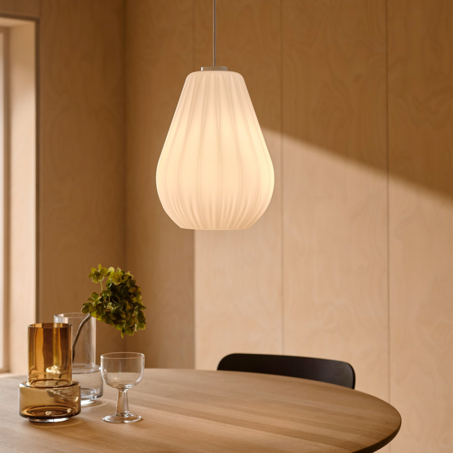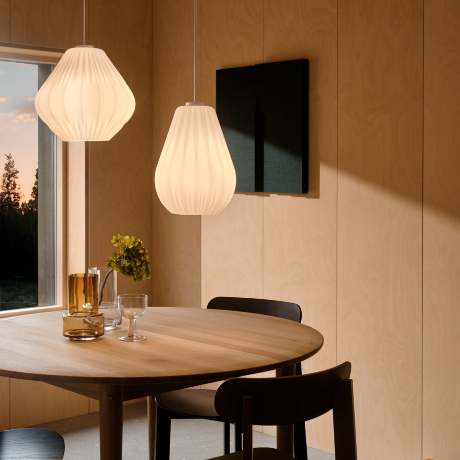 Sallino Pendel från Nordlux kombinerar klassisk form med modern enkelhet. Skärmen i matt opalglas ger ett mjukt, diffust ljus som skapar en varm och välkomnande atmosfär i rummet. De subtila plisserade detaljerna tillför textur och karaktär till den i övrigt eleganta designen.