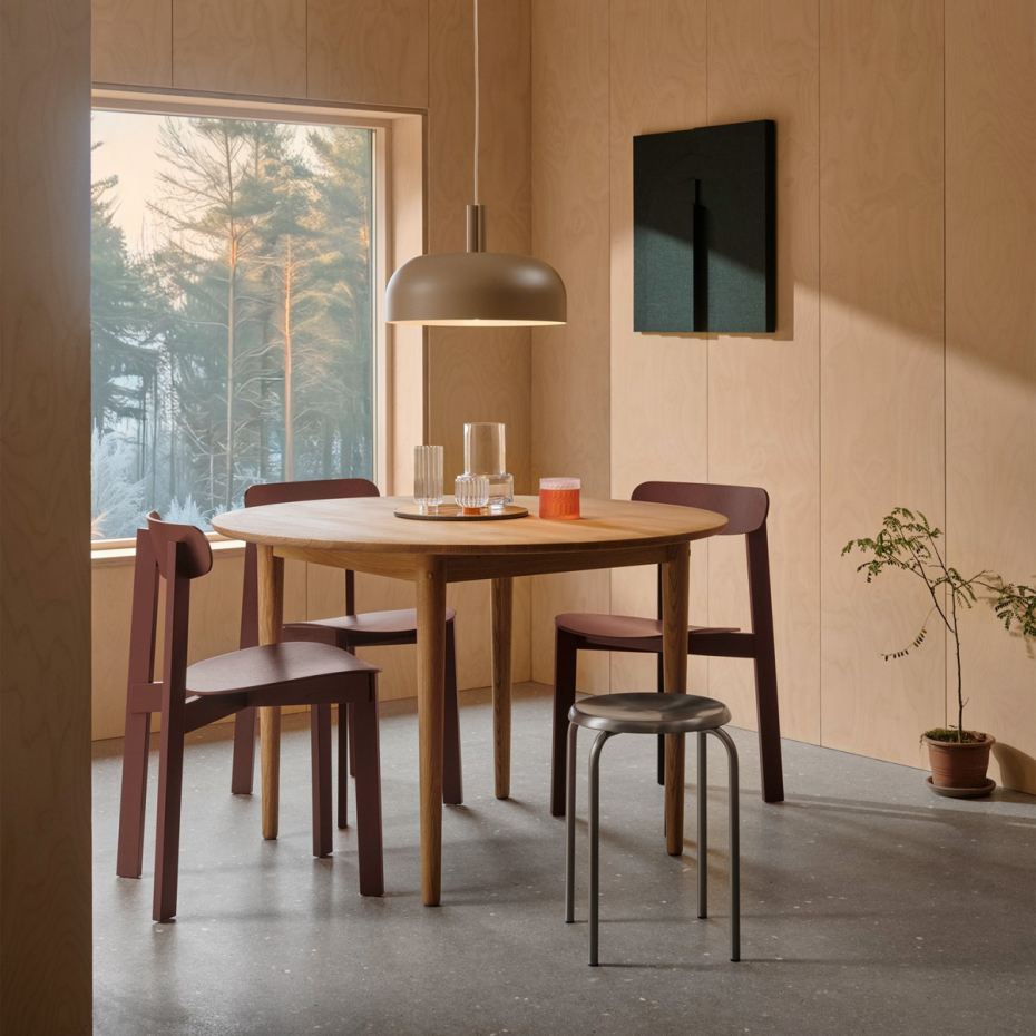 Sandro Pendel från Nordlux förkroppsligar ren skandinavisk design med sin enkla, rundade form och en snygg detalj på skärmens ovansida som tillför en subtil karaktär. Den minimalistiska designen gör att pendellampan passar perfekt ovanför ett matbord, där den bidrar till ett modernt och balanserat uttryck.
