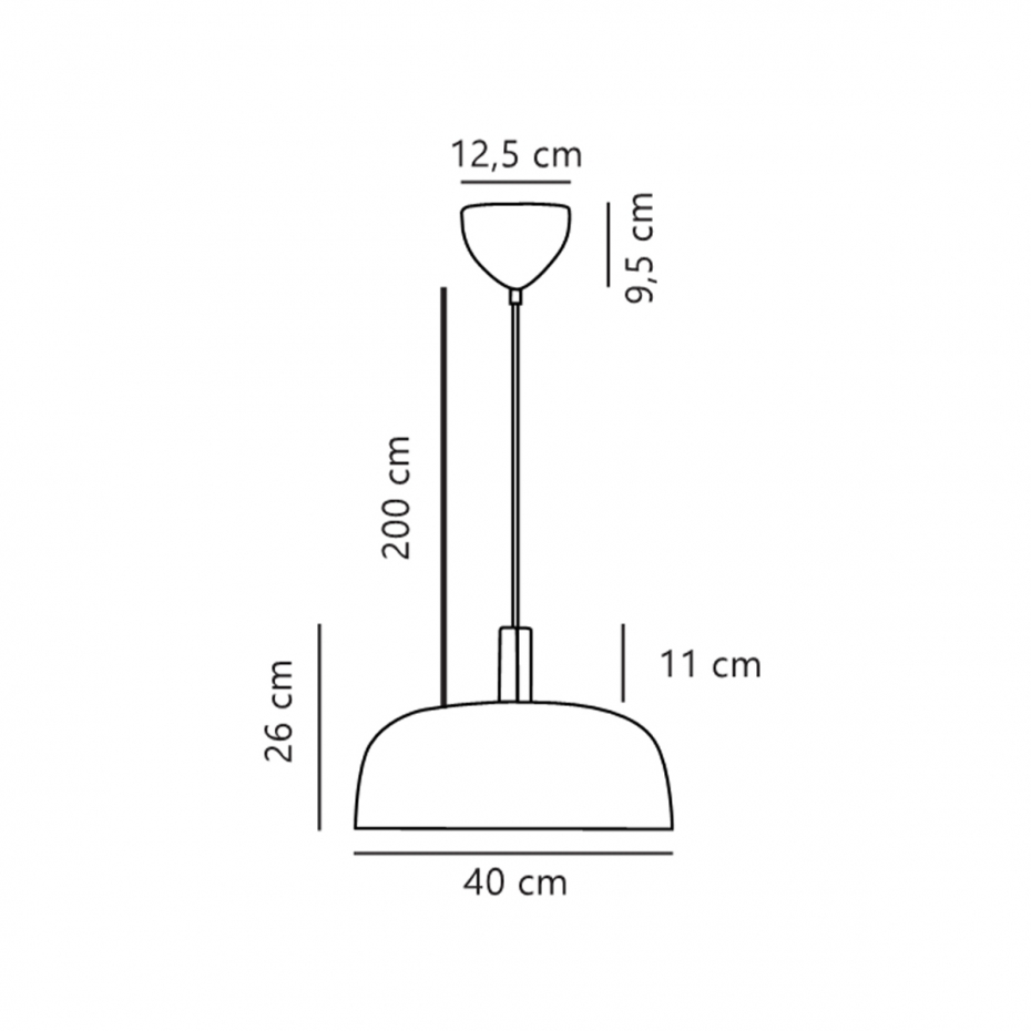 Diameter: 40 cm Höjd: 26 cm Ljuskälla: Ingår ej Material: Metall/Plast Sladdlängd: 2 m Sockel: E27, Max 15 W