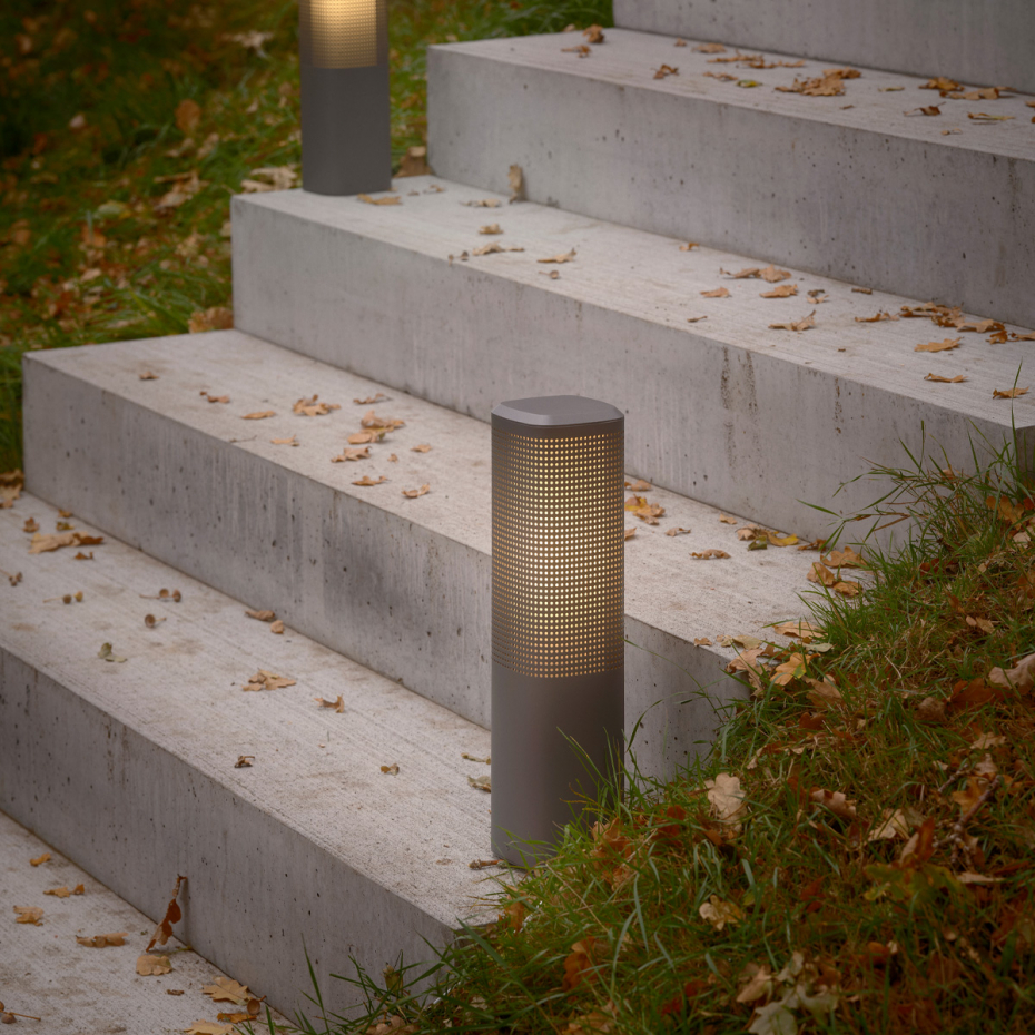 Sidara 45 Pollare Seaside från Nordlux är designad av den välkända studion Jacob Jensen Design och kombinerar modern minimalism med ett raffinerat, arkitektoniskt uttryck. Den perforerade ytan skapar ett vackert samspel mellan ljus och skugga i trädgården eller längs gångstigar.