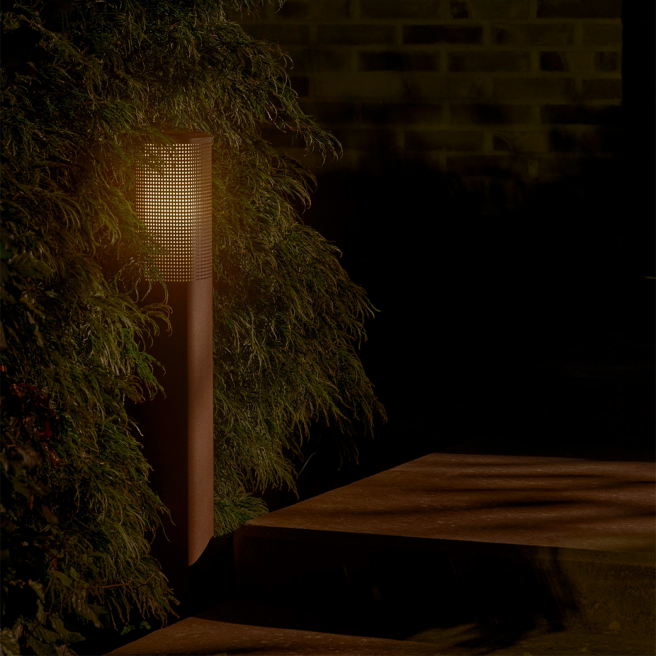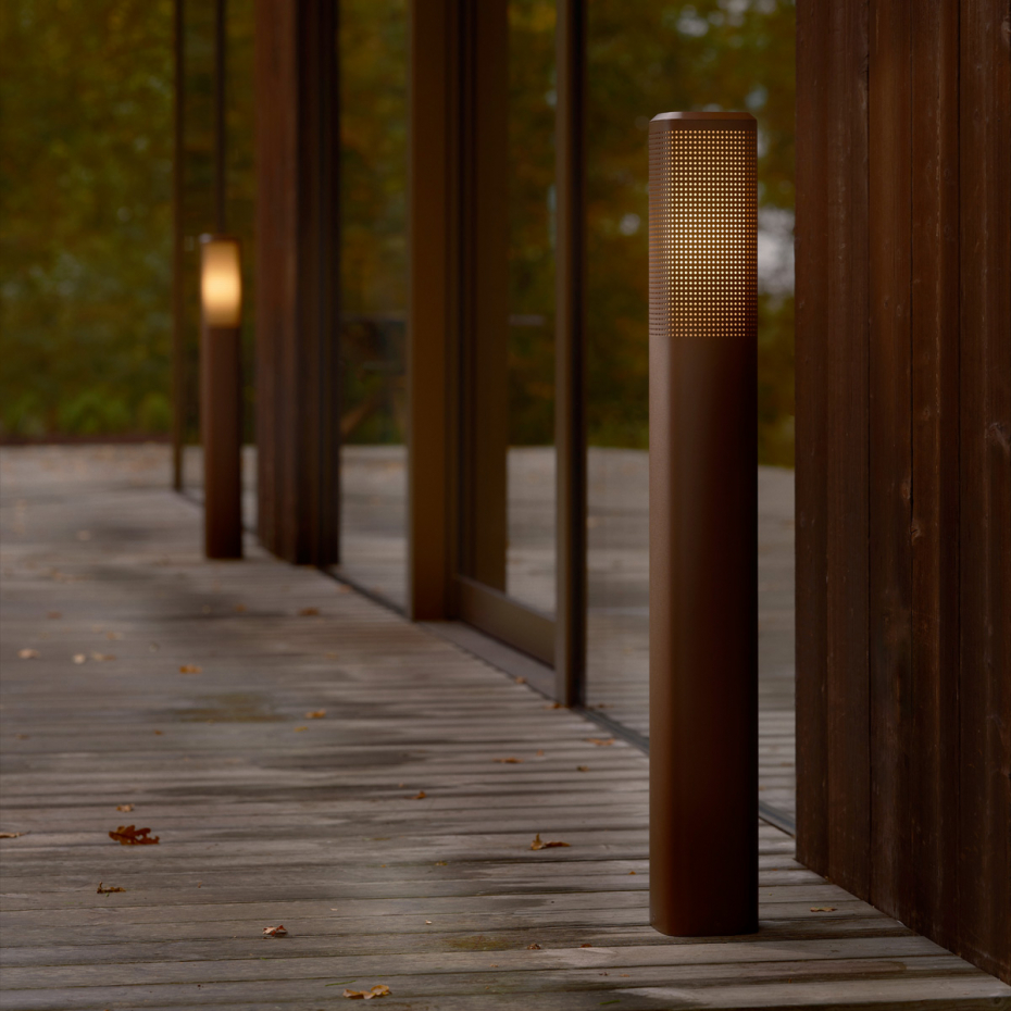 • Sidara 95 Pollare Seaside från Nordlux är designad av den välkända studion Jacob Jensen Design och kombinerar modern minimalism med ett raffinerat, arkitektoniskt uttryck. Den perforerade ytan skapar ett vackert samspel mellan ljus och skugga i trädgården eller längs gångstigar.