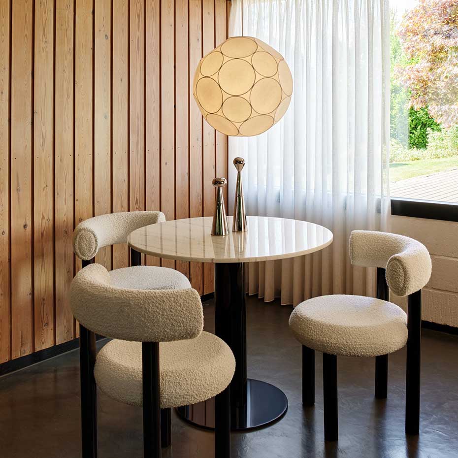 Soft Medium pendel från Tom Dixon har en mjukt rund form, inspirerad av planeternas nästan sfäriska yta. Den diskreta men volymstarka designen gör lampan till ett naturligt blickfång över matbordet, i vardagsrummet eller i större rum. Soft Medium ger modern belysning med mjuk elegans och tidlös design.
