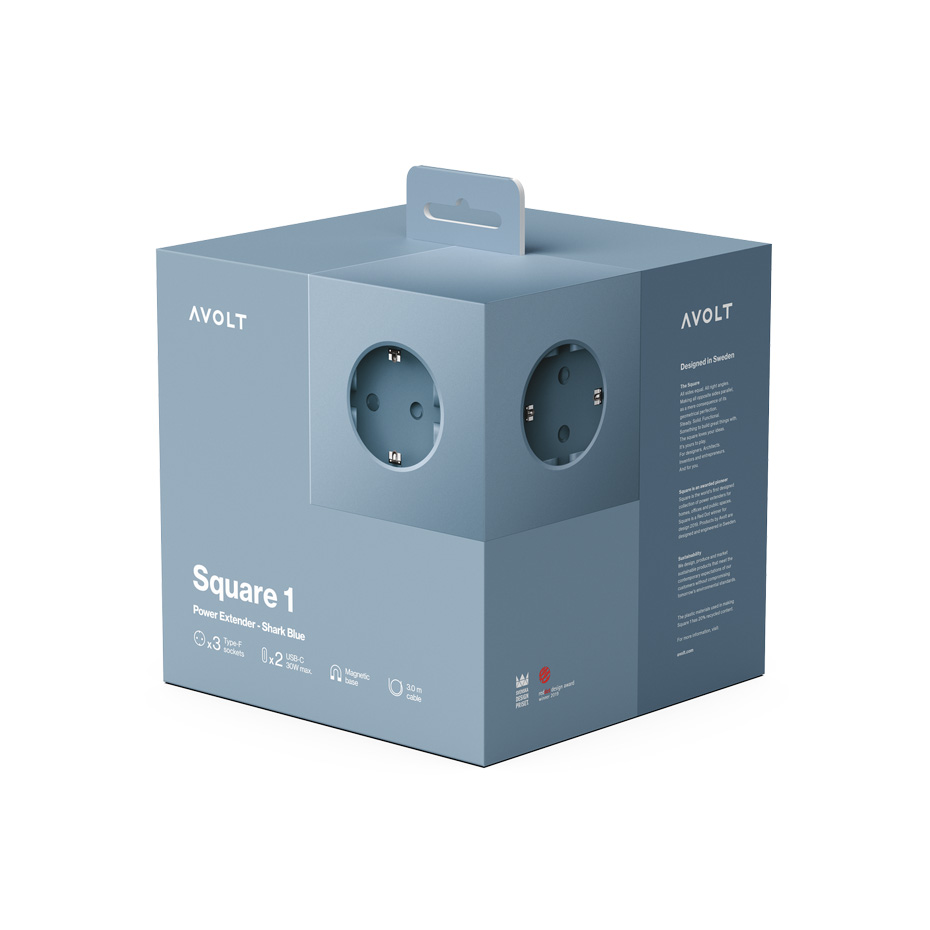 Square 1 Grenuttag Dual USB-C 30W & Magnet 3m från Avolt är ett mångsidigt grenuttag som smälter in i allt från hemmamiljöer till kontor och delade arbetsplatser. Det är utrustat med tre Schuko-uttag och två USB-C-portar med upp till 30W laddningskraft, vilket gör det enkelt att driva flera enheter samtidigt. Den 3 meter långa kabeln ger god räckvidd, medan den magnetiska basen gör att grenuttaget kan fästas säkert på olika ytor med den medföljande metallplattan och tejpen.
