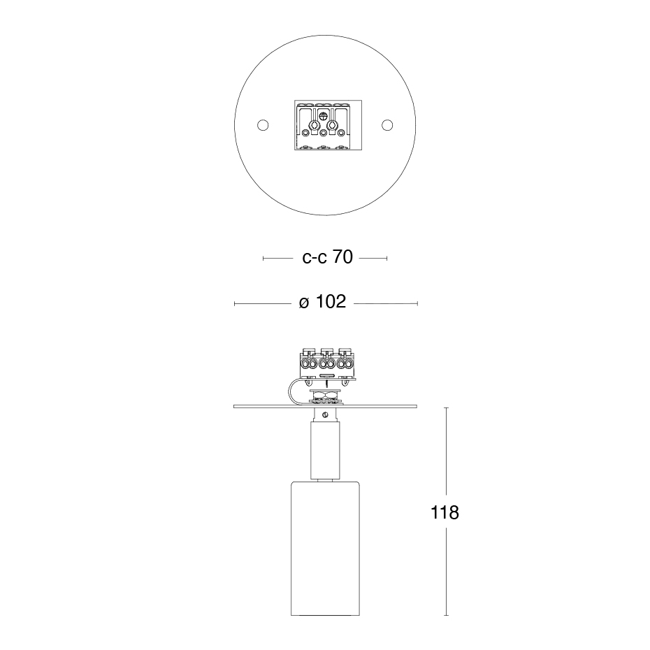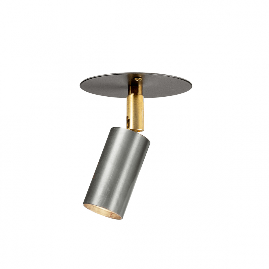 Diameter: 10,2 cm Höjd: 11,8 cm Ljuskälla: Ingår Material: Rå stål Montering: För fast montage Sockel: GU10, MR11 Mini 3,5 W 250 lm 2200-2700 K CRI 90 dim-to-warm Övrigt: Observera att de råa materialen förändras med tiden och utvecklar en patina – en viktig del av designen och ett kvitto på hantverk och ärliga material.