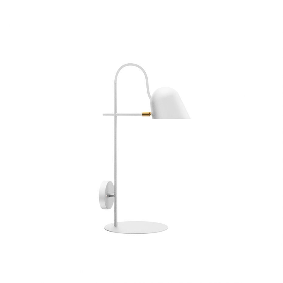 Diameter: 11,1 cm Djup: 35,4 cm Höjd: 62 cm Ljuskälla: Integrerad Material: Lackerad metall/Mässing Montering: För fast montage Sockel: LED, 6 W 660 lm 2700 K Övrigt: Strömbrytare inne i skärmen. Justerbar skärm. Ej dimbar.