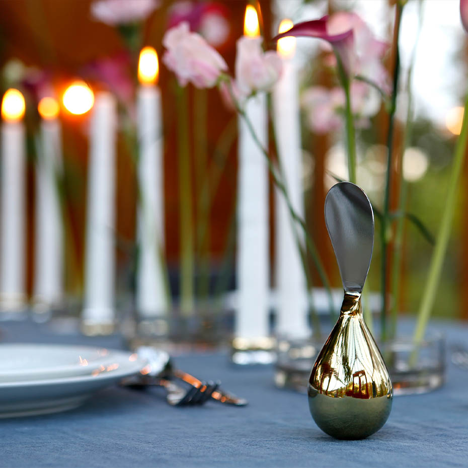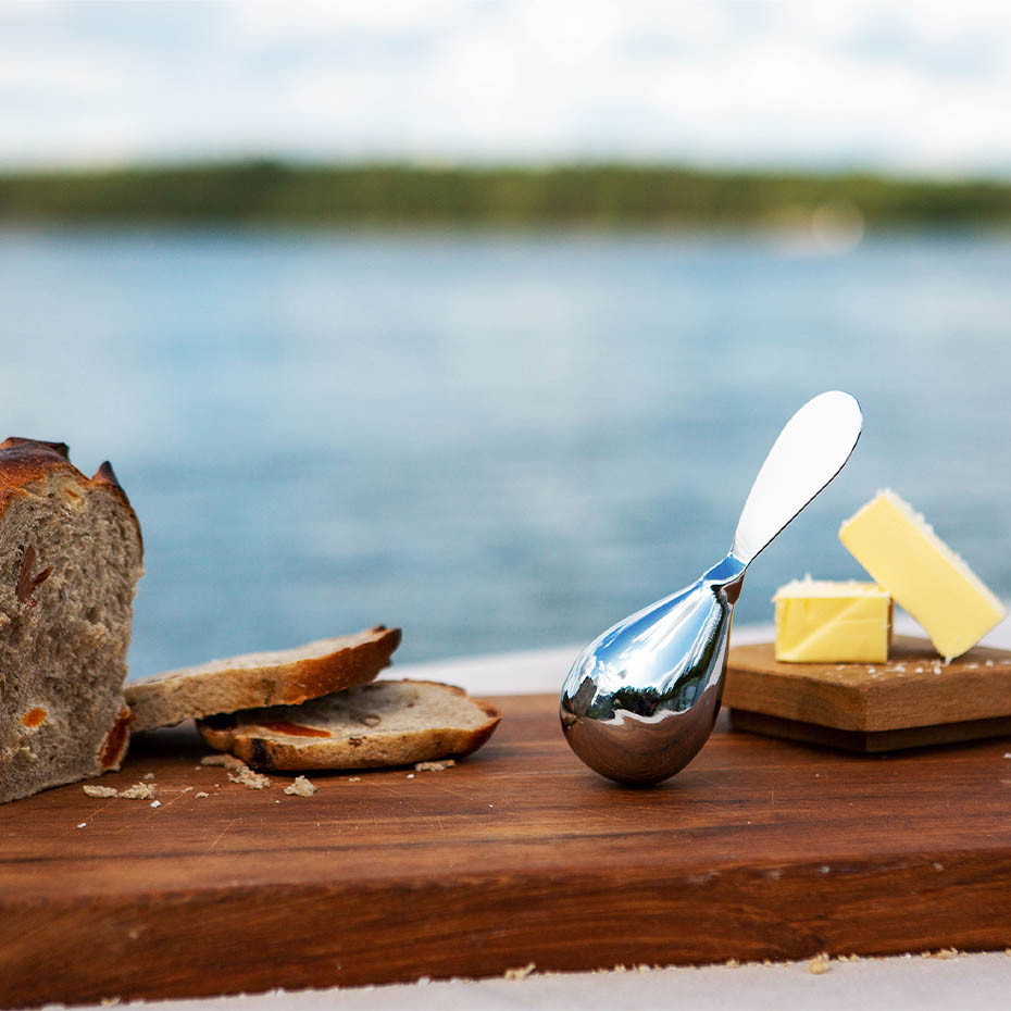 Tilt Smörkniv från Klong är en lekfull och smart detalj på det dukade bordet. Tack vare den genomtänkta tyngdpunkten i handtaget kan kniven gunga fram och tillbaka utan att falla och kladda ner ytan. Perfekt för smör, sylt och andra tillbehör.